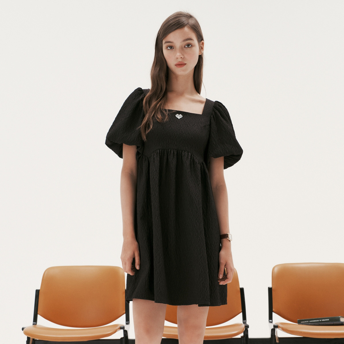 连衣裙气质高级感泡泡袖设计方领连衣裙淑女气质裙子 643009