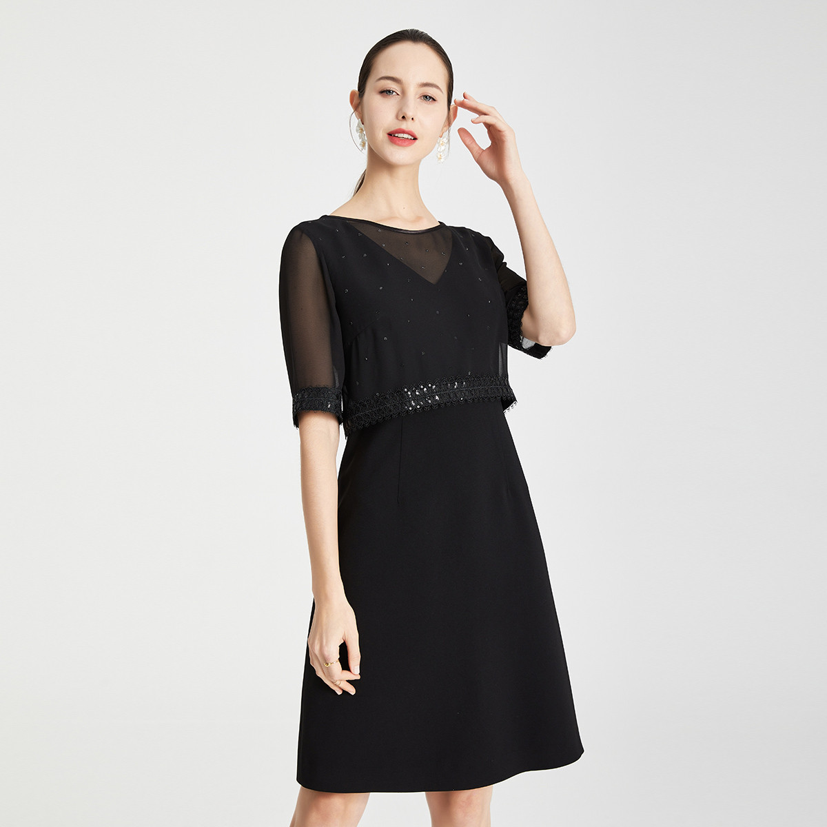 商场同款名媛气质珠片绣假两件光感优雅女人味连衣裙 825823
