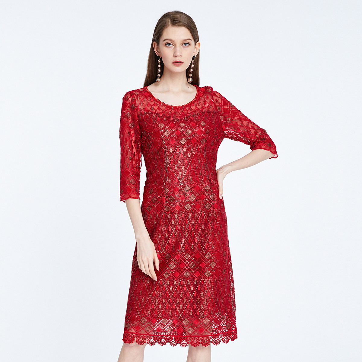春秋高级定位蕾丝婚礼喜庆连衣裙宴会 035551