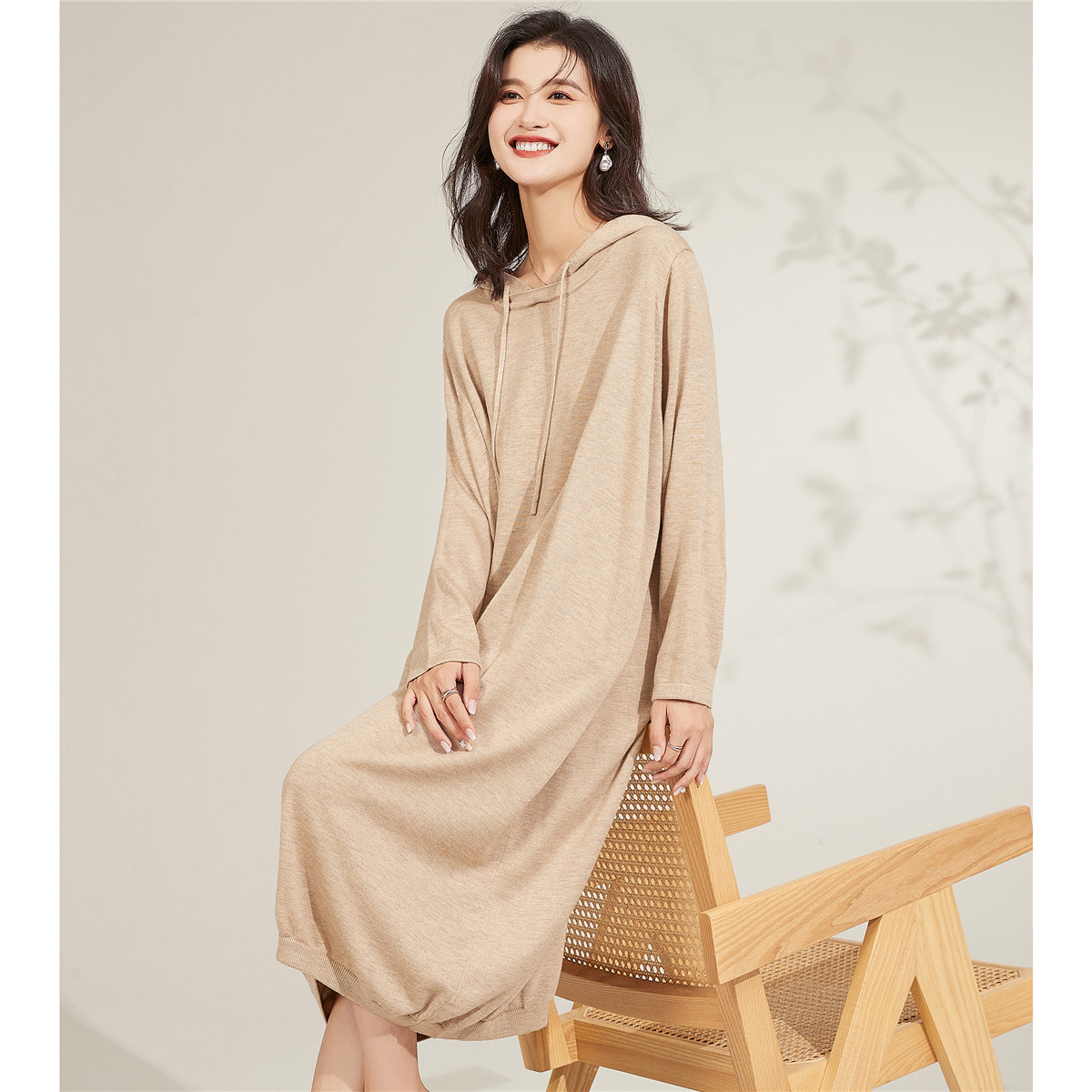 【含羊毛】新款大码宽松连帽针织卫衣长袖针织连衣裙 233183