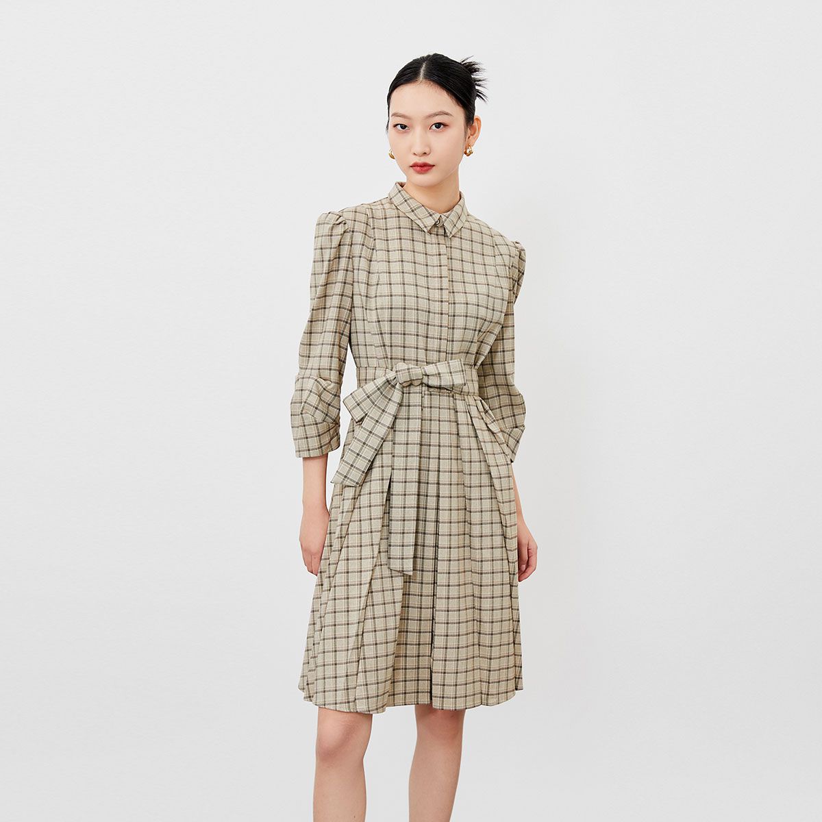 【春夏美拉德】【专柜同款】格纹中长裙百褶学院连衣裙百搭时尚 012561
