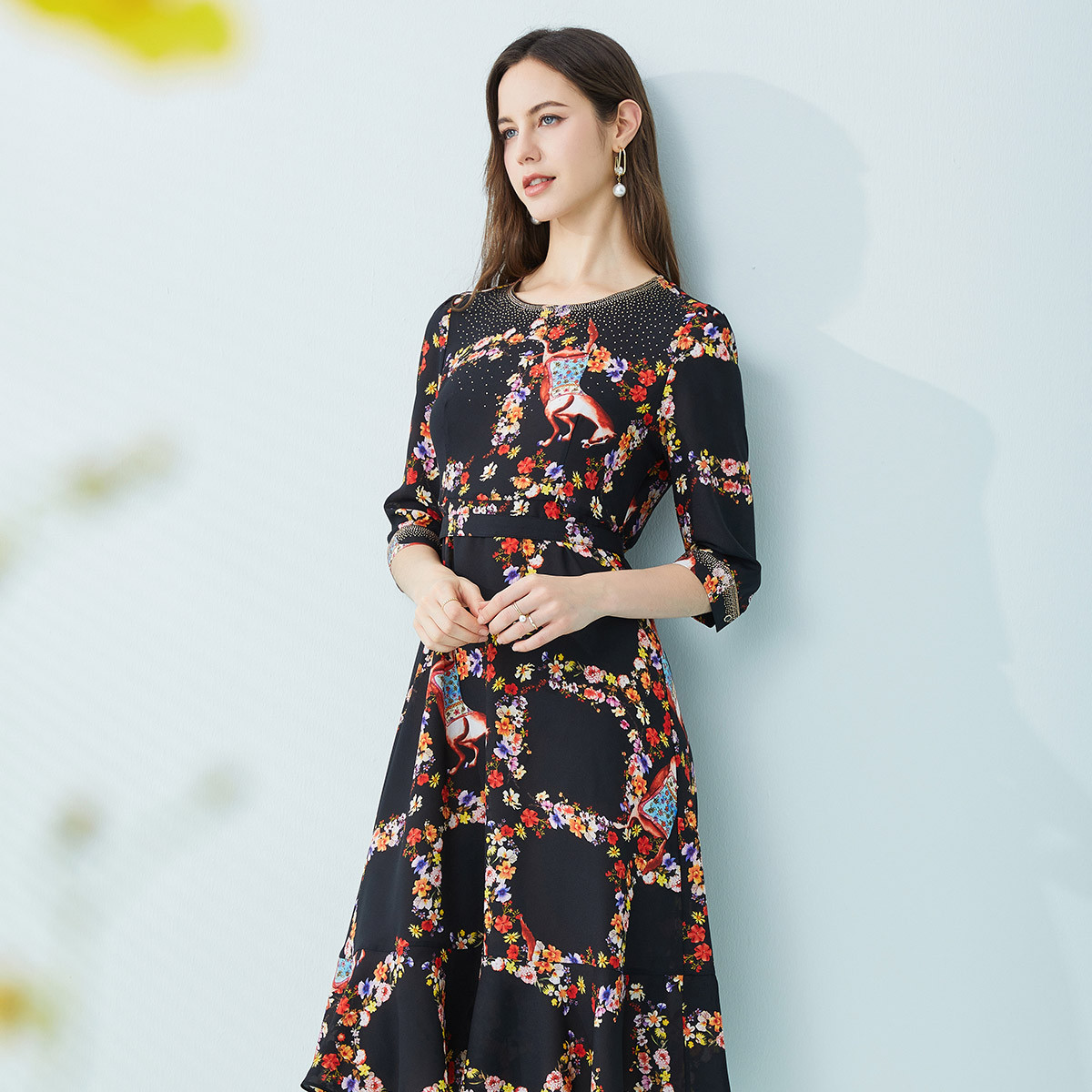 [商场同款]秋季复古烂漫小碎花别致鱼尾摆连衣裙 457375