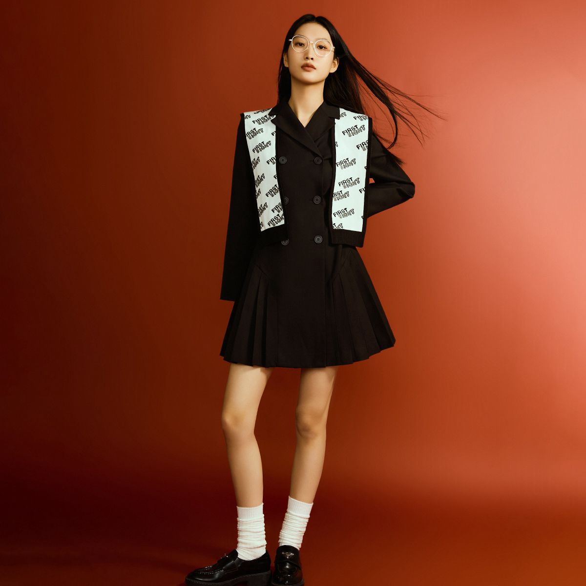 【两件套收腰双排扣】春夏专柜同款简约百褶裙西装式连衣裙百搭 892689