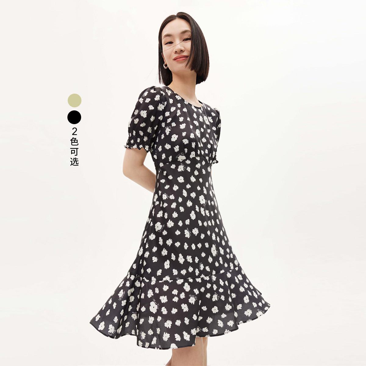 【商场同款】暗香疏影连衣裙女式长裙碎花裙显瘦A字裙夏季短袖女 377878