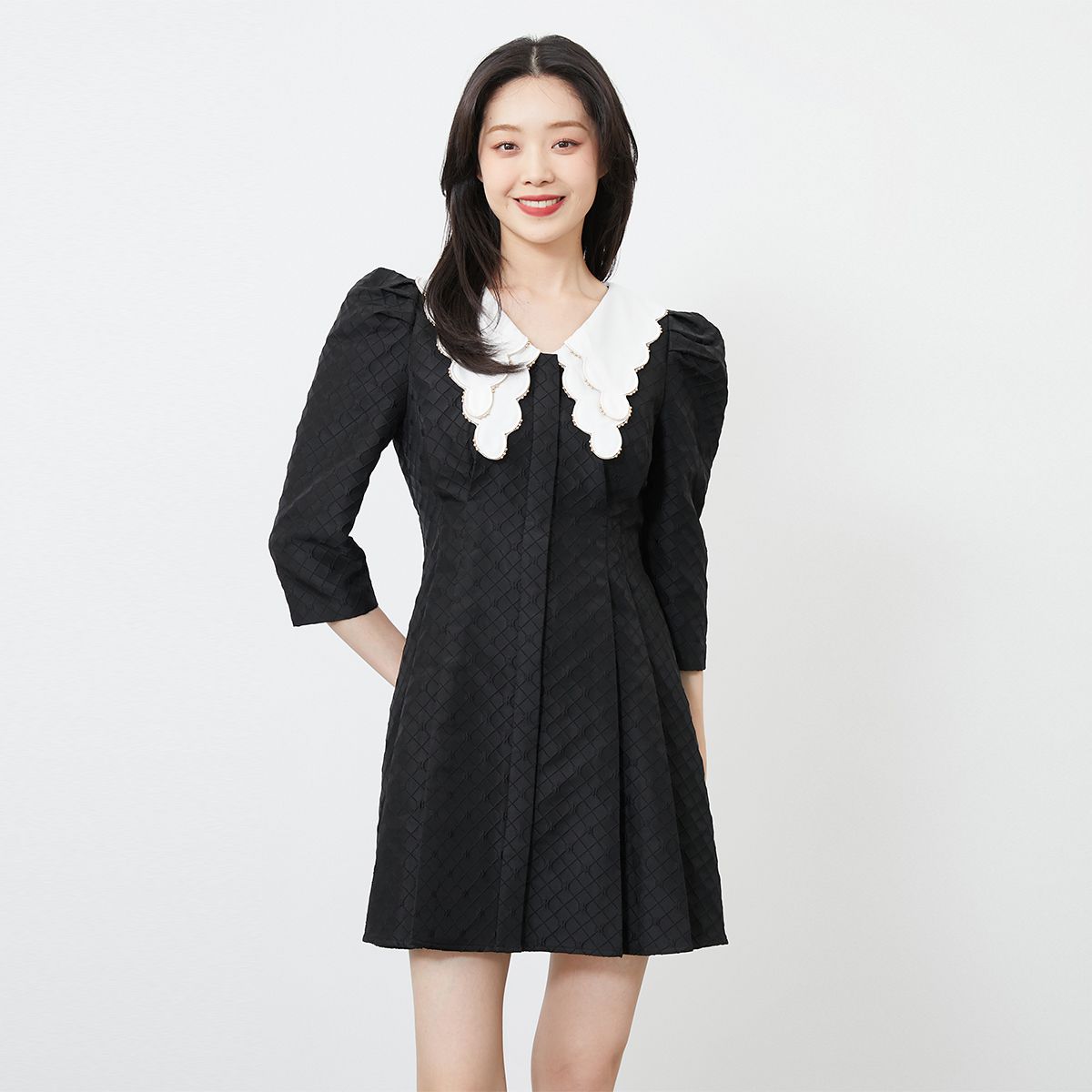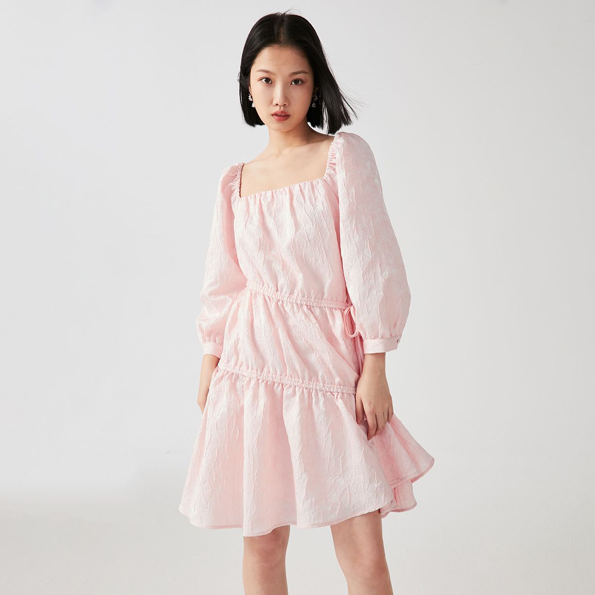 【肌理感抽绳设计】主推款质感方领显瘦春秋专柜同款连衣裙 159377