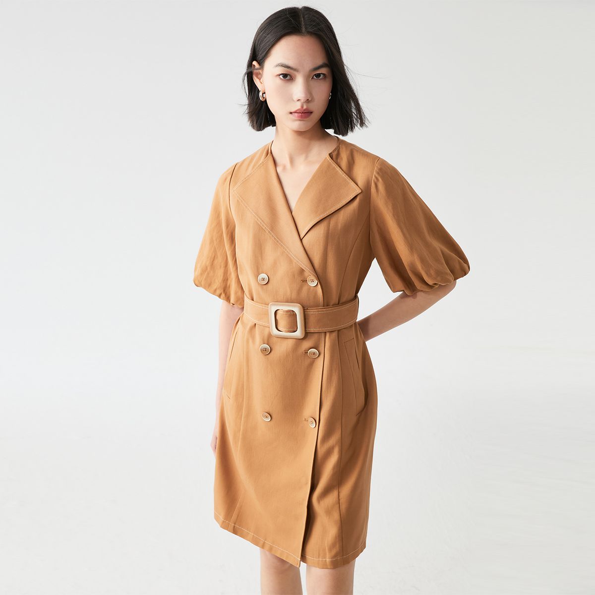 【春夏美拉德】【含亚麻清爽舒适】泡泡袖连衣裙气质百搭时尚 544529