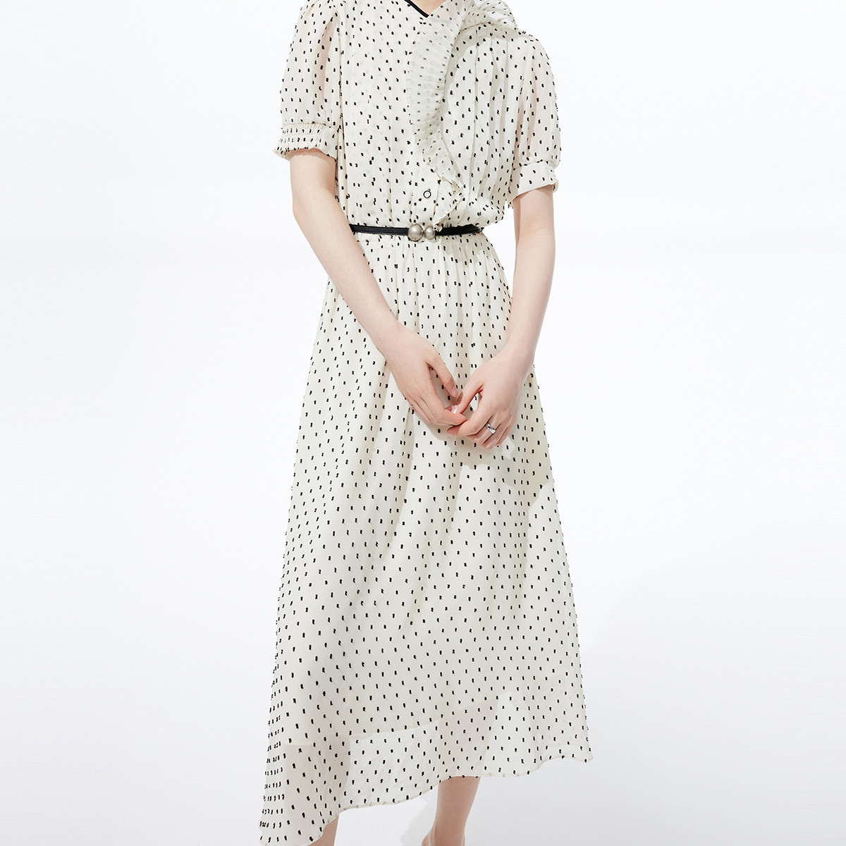 连衣裙夏季女复古波点浪漫洋气荷叶边设计垂感高腰显瘦连衣裙子女 055643