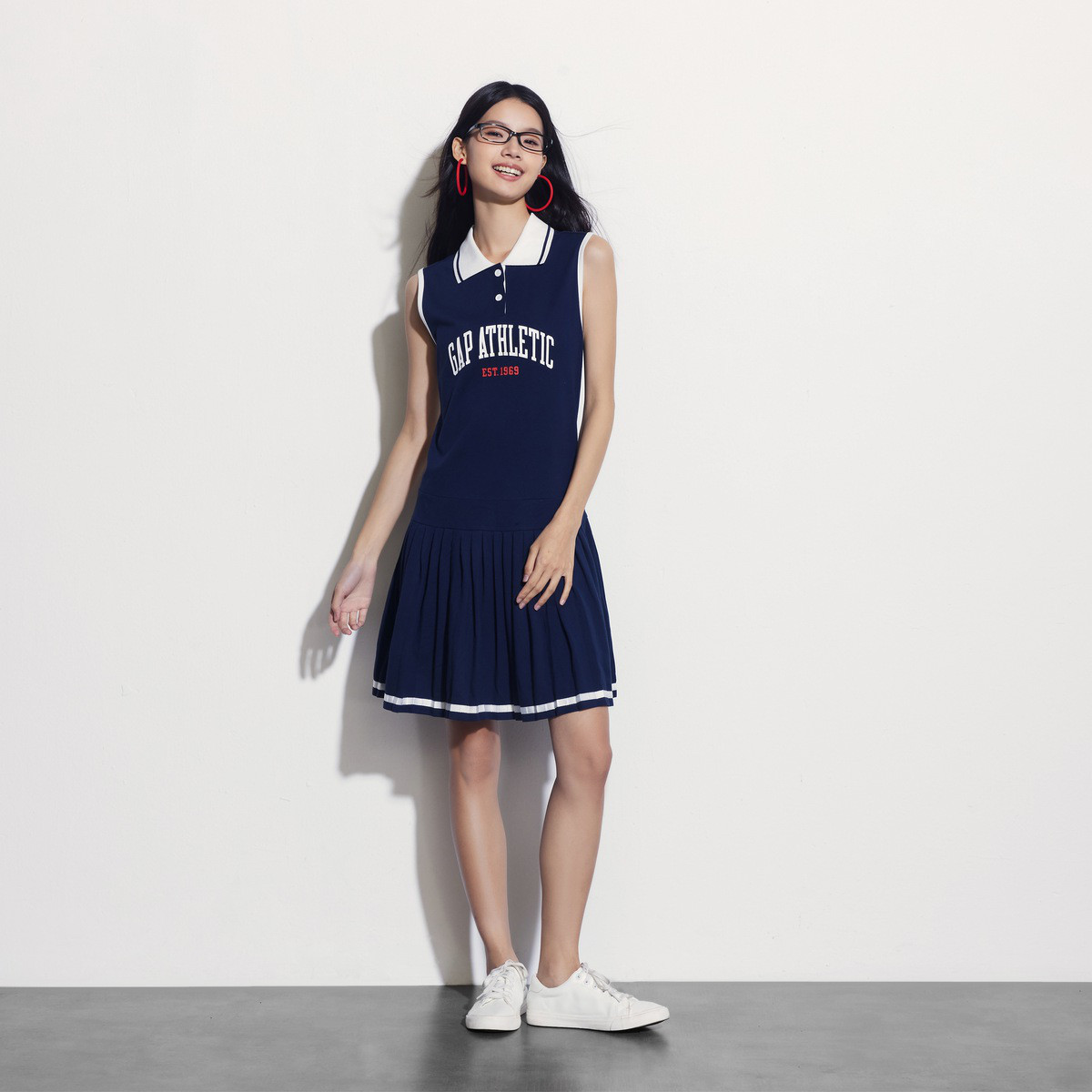 Gap女装夏季撞色无袖百褶连衣裙465053 277786