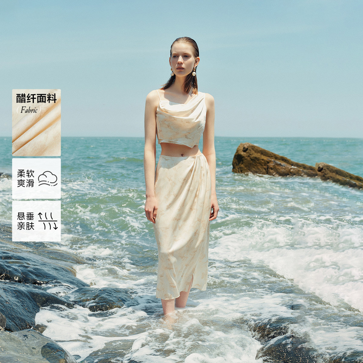 【不对称套装】 夏季优雅不对称吊带长裙套装连衣裙女 069850