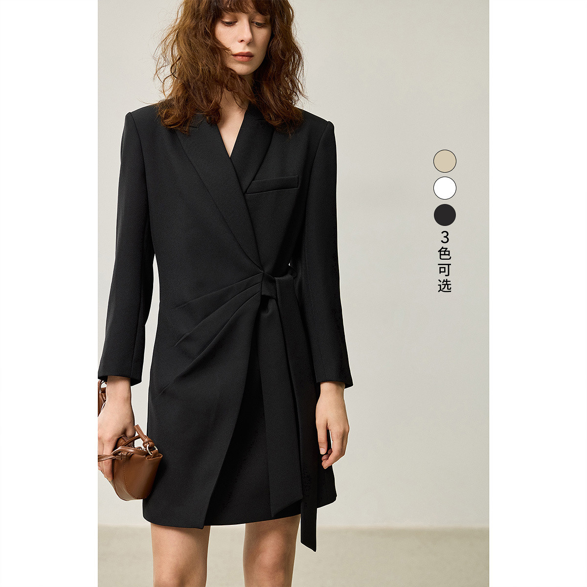 春季连衣裙女日常通勤时尚气质高级感西装式显瘦连衣裙小黑裙女 180187