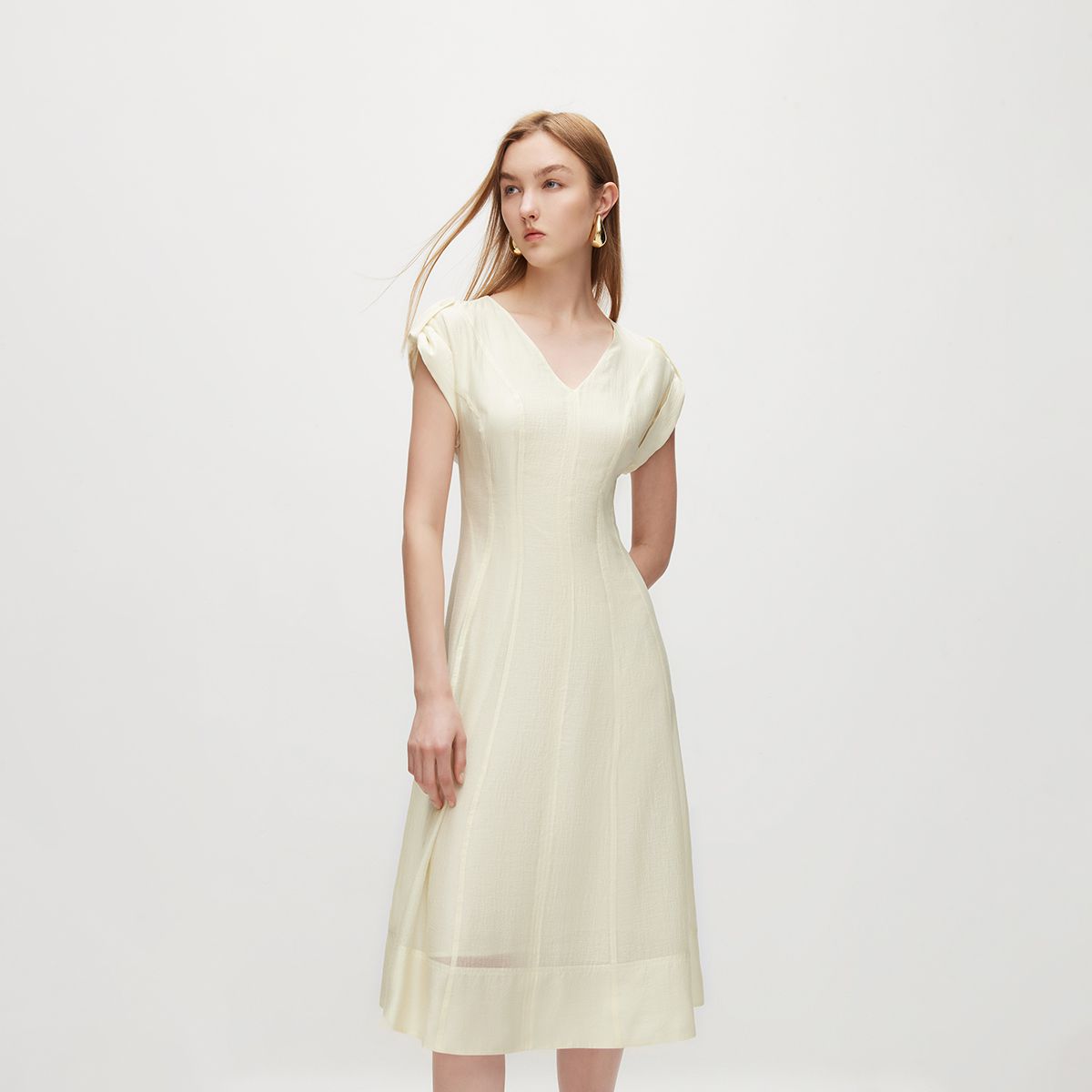 【休闲百搭】夏季V领中长款A字修身连衣裙女 555034