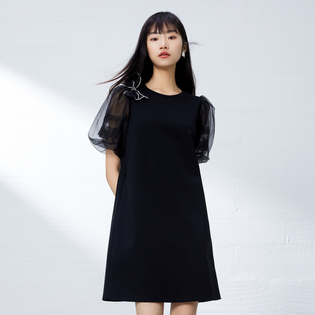 气质泡泡袖圆领连衣裙女夏季浪漫时尚蝴蝶结独特设计感H型裙子女 686787