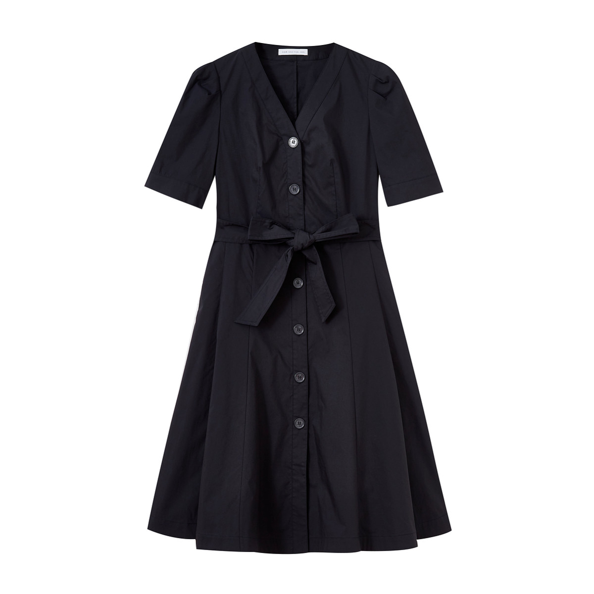 纯色短袖v领连衣裙女夏季休闲气质显瘦简约单排扣收腰A字裙子女 604867