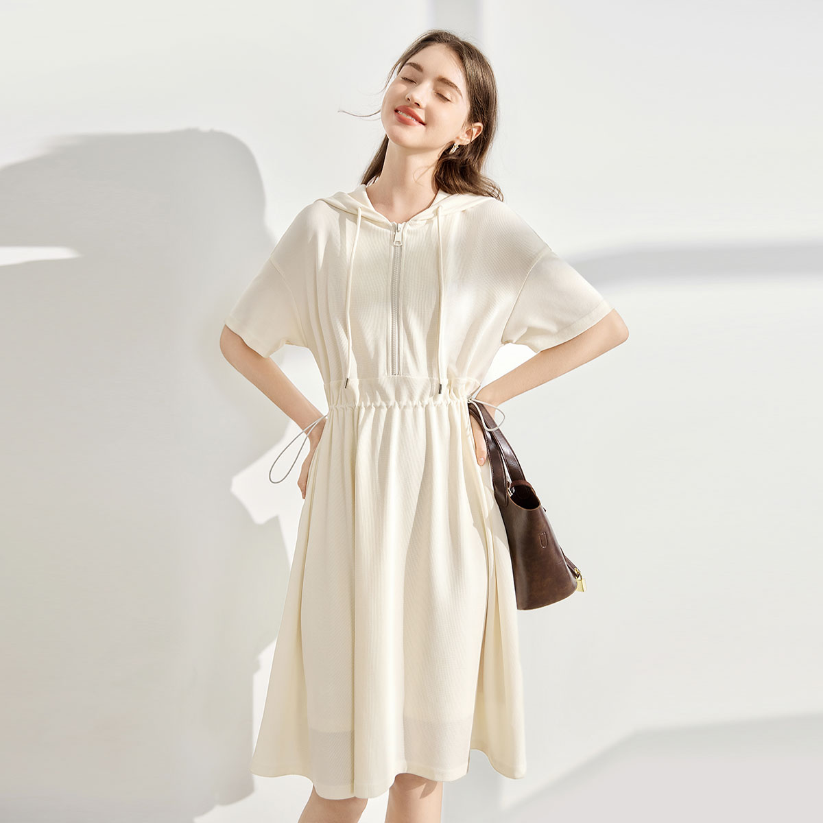 【2024夏季】流行休闲连帽拉链门襟连衣裙抽绳收腰显瘦裙子女 552788