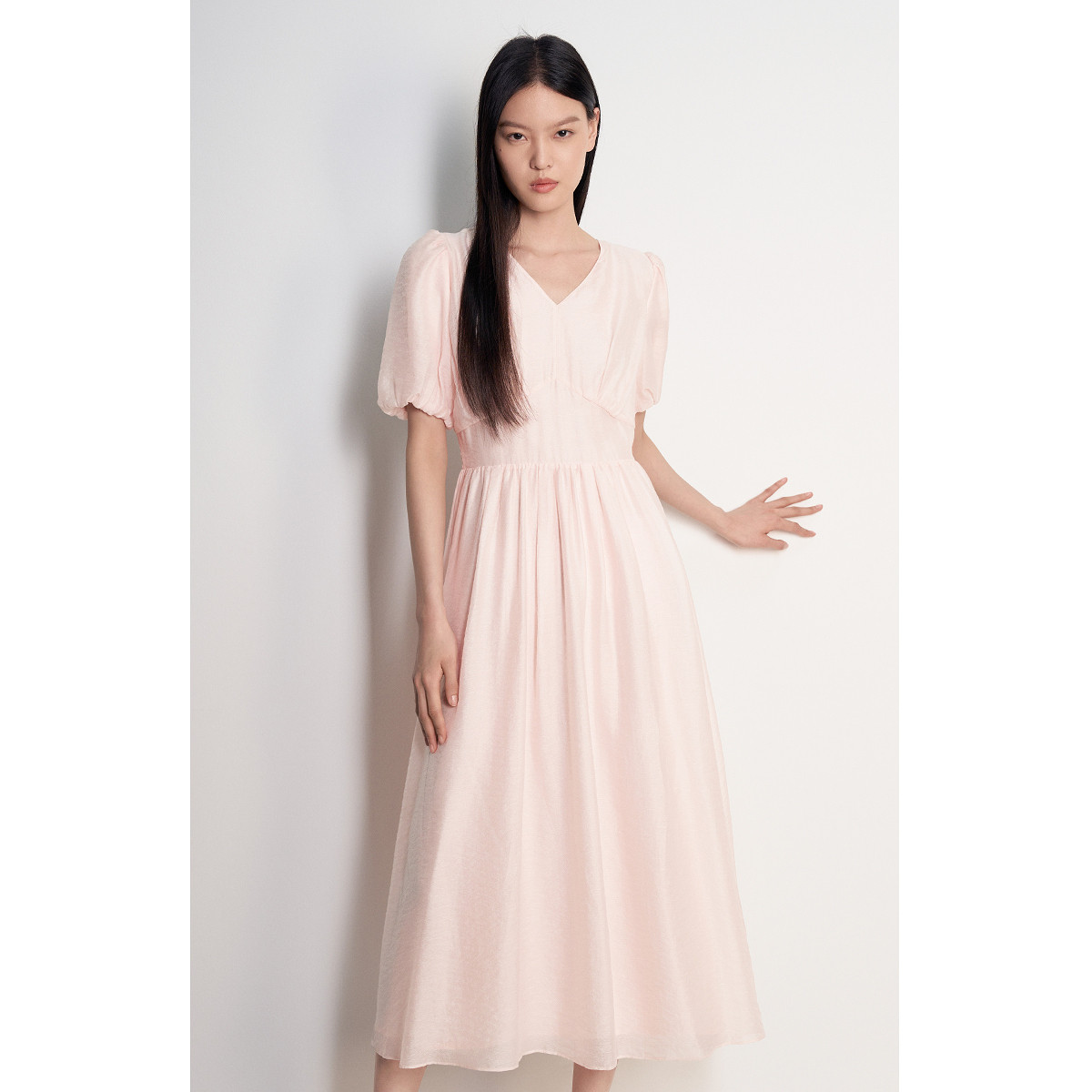 夏装 天丝薄提花法式桔梗裙连衣裙收腰气质 185103