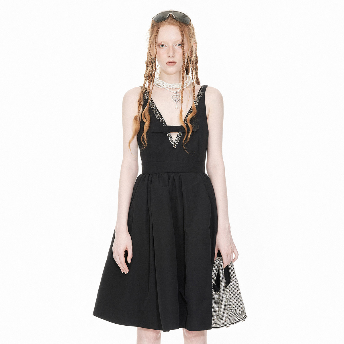 地素聚会钉珠连衣裙春季专柜复古冷酷经典小黑裙女 756811