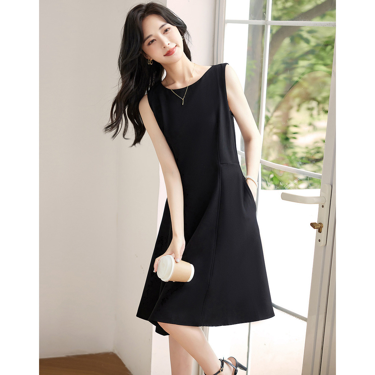 【通勤女神裙】夏圆领修身端庄收腰小黑/白裙无袖背心优雅连衣裙 320705