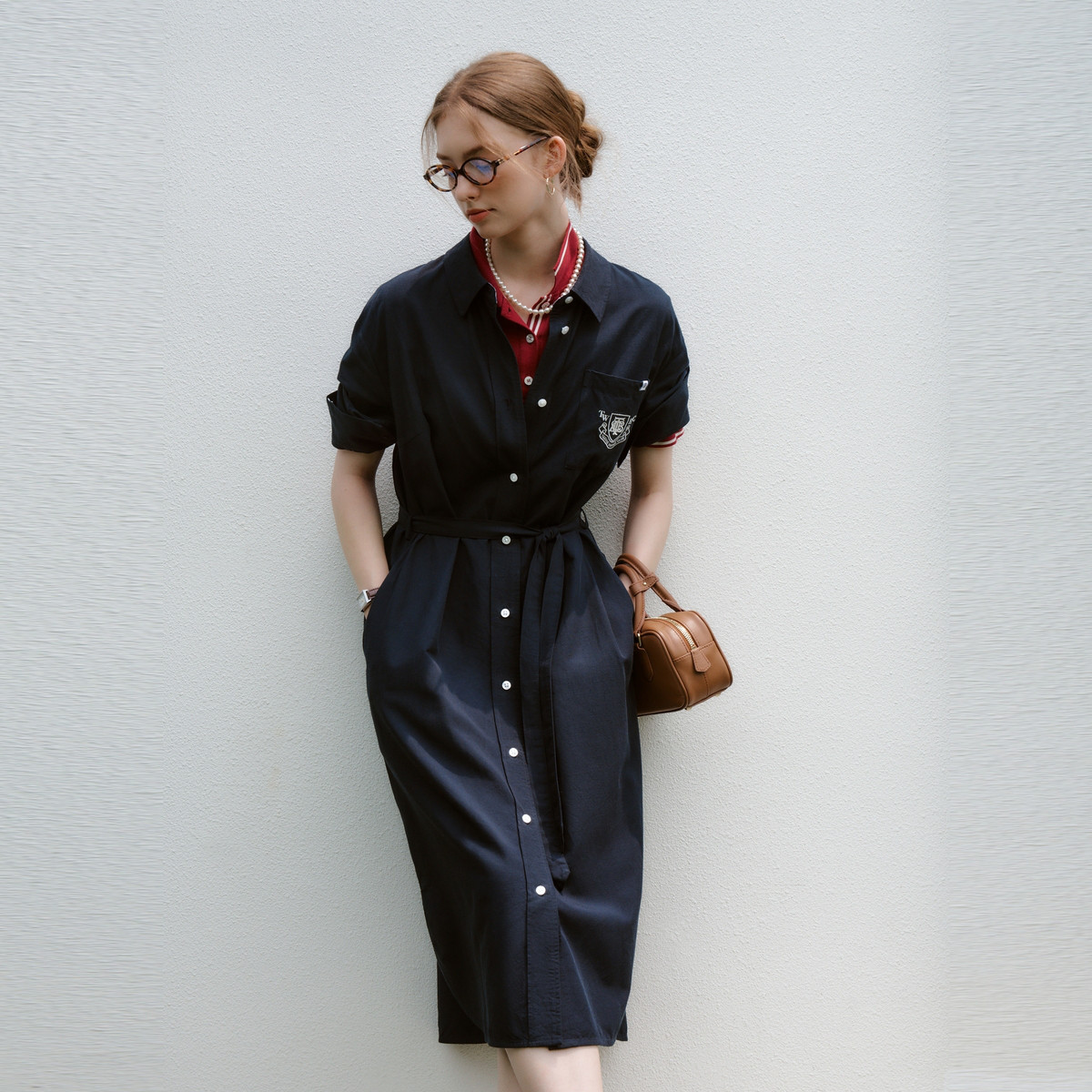 【亚麻混纺】小熊夏季款休闲衬衫长裙学院风女士 434305
