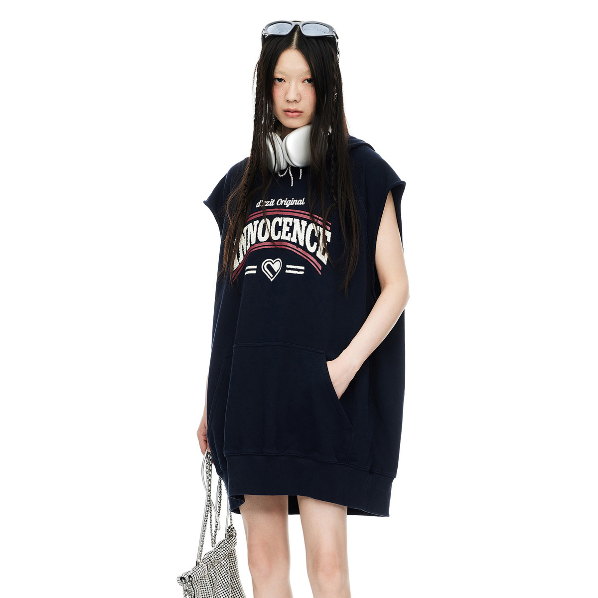 地素连衣裙夏季运动风无袖连帽设计卫衣裙女 137675