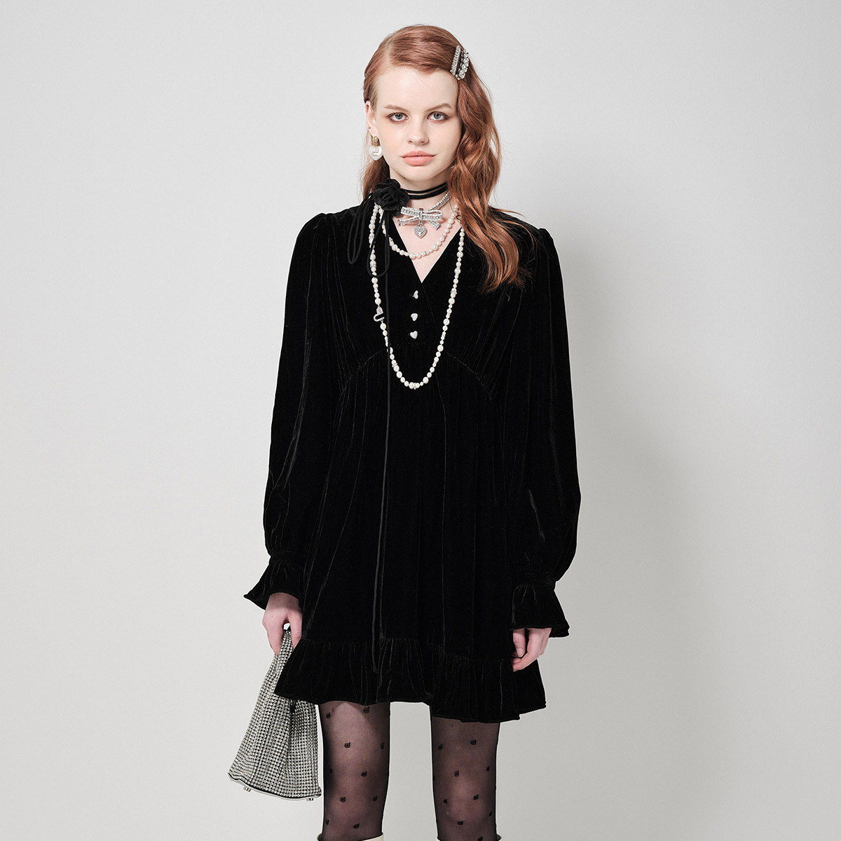 地素丝绒连衣裙春专柜复古摩登潮流浪漫主义风格女 327051