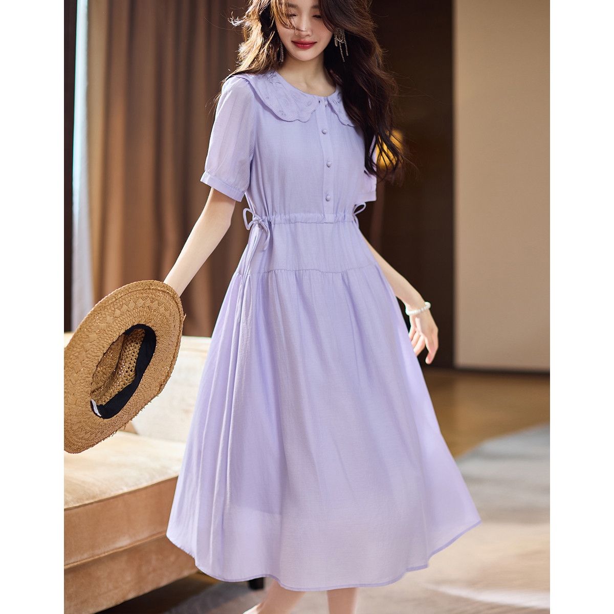 清新文艺天丝连衣裙2025夏季新款抽褶收腰显瘦短袖连衣裙女 319689