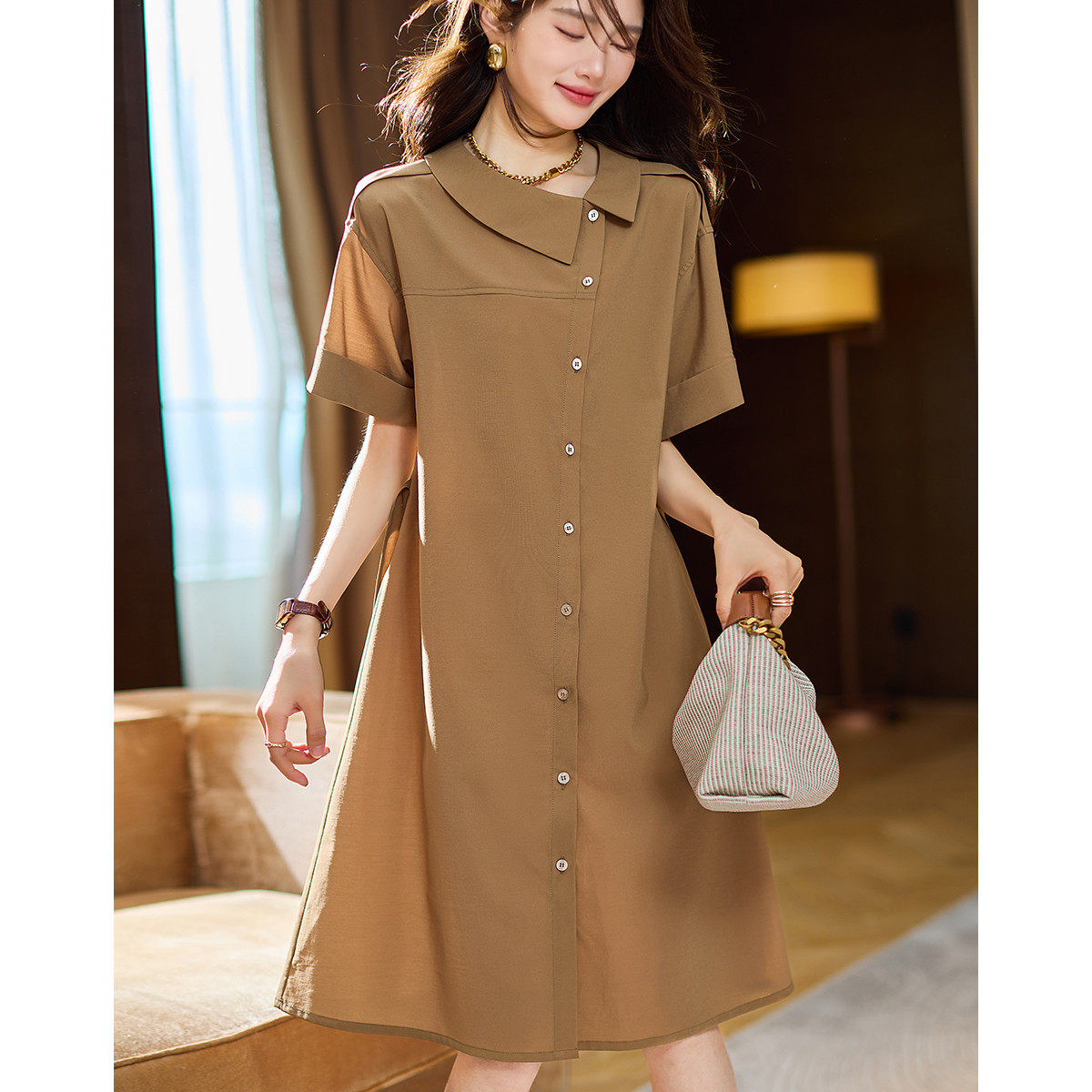 休闲衬衫裙夏季新款大码胖MM通勤气质简约百搭不规则短袖连衣裙 528585