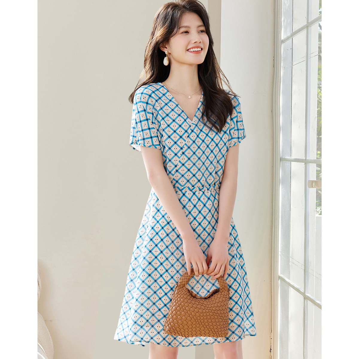 【小清新连衣裙】2025夏季新款干净清新印花显瘦V领连衣裙 426889