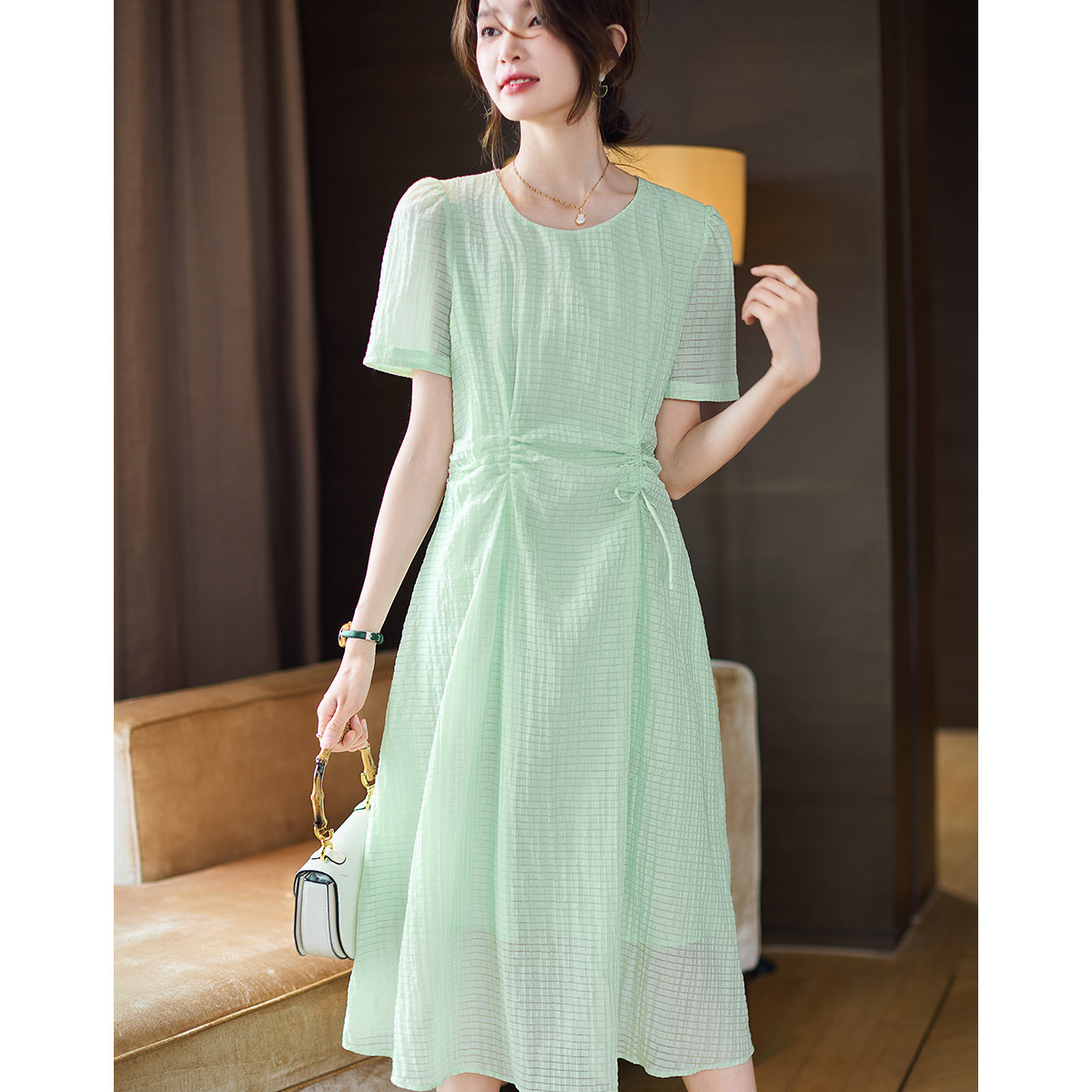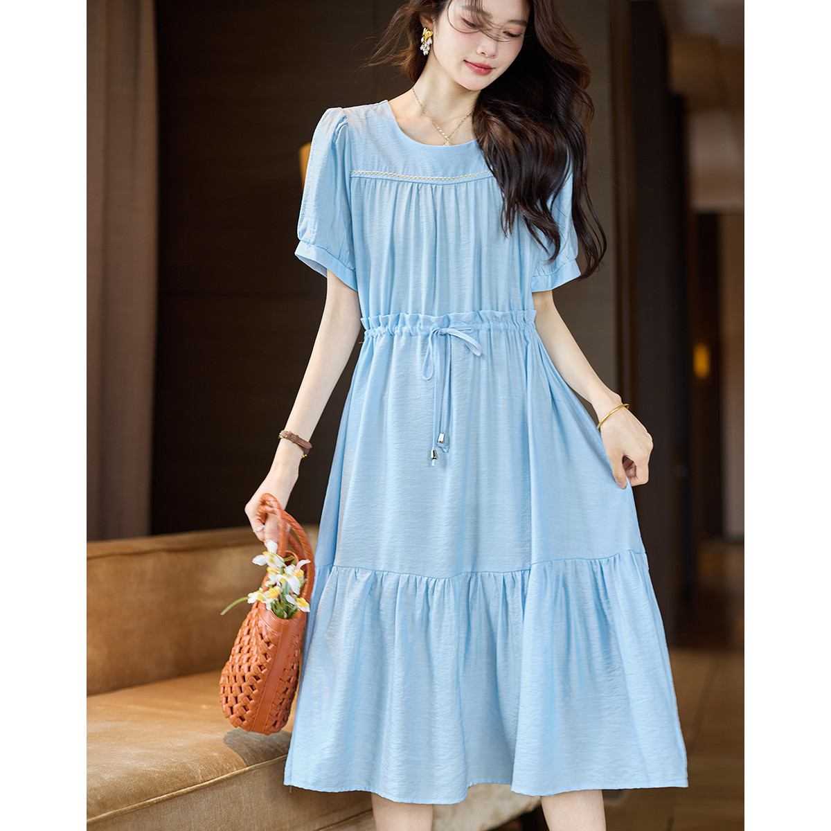 优雅气质连衣裙2025夏季新款通勤高级感抽绳收腰大裙摆长裙 526153