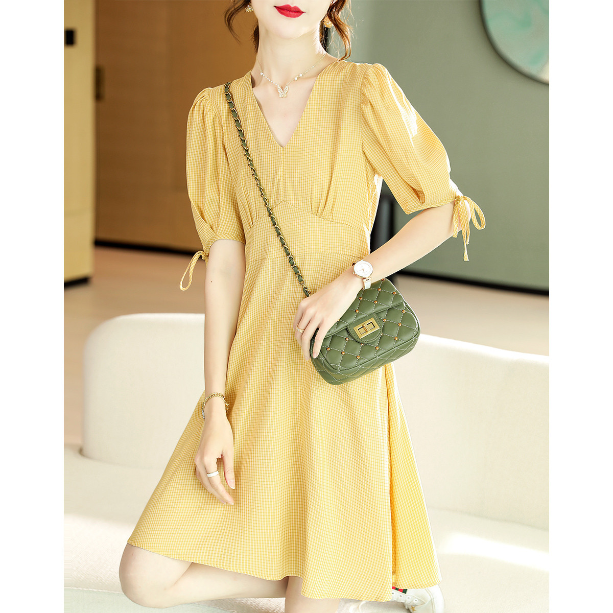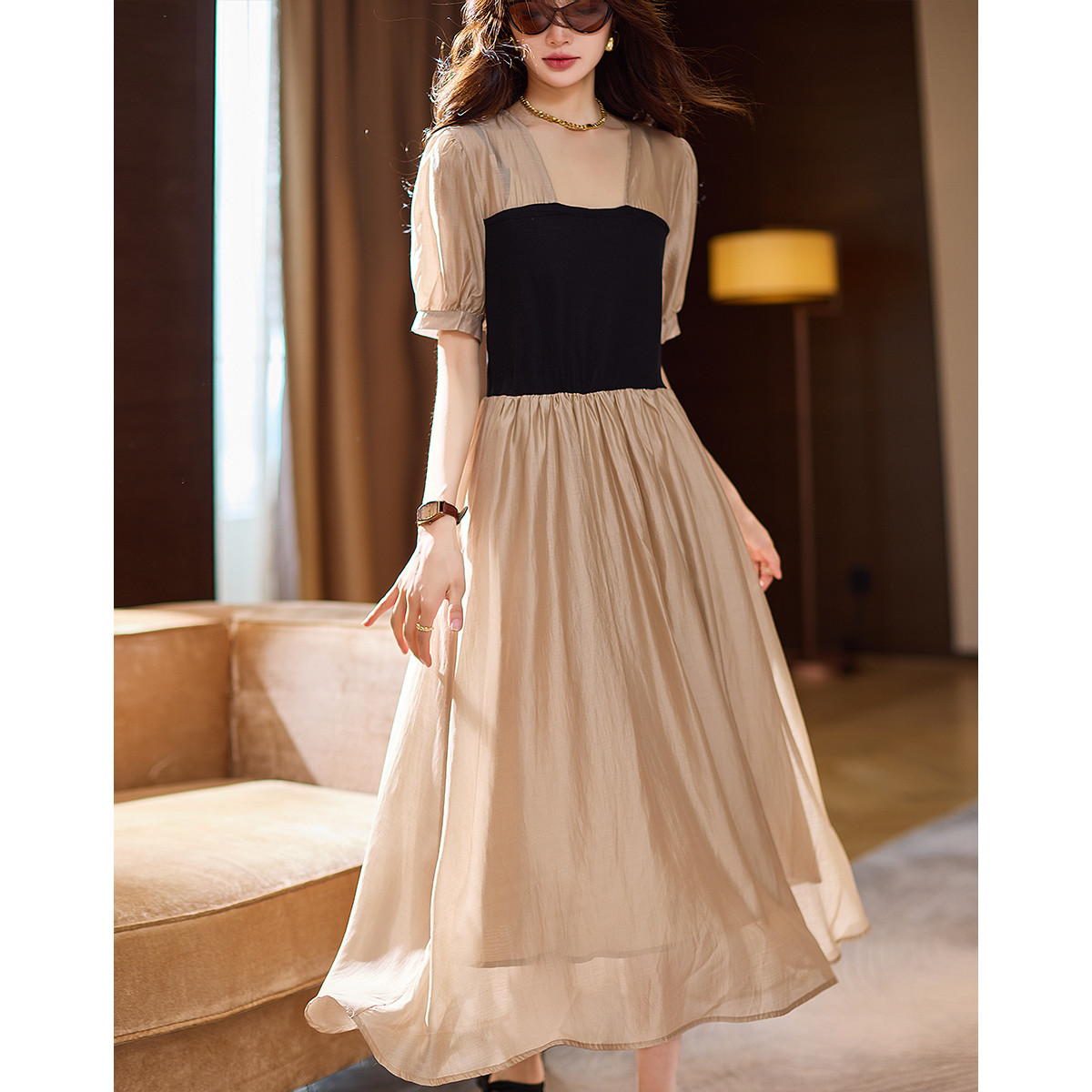 法式浪漫高级感连衣裙2025夏季新款轻薄飘逸泡泡袖宽松连衣裙 471241