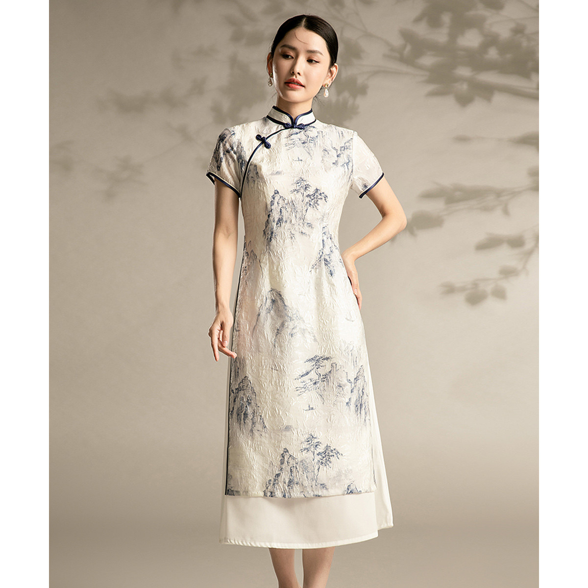 古韵水墨旗袍改良版复古国风连衣裙夏季日常可穿连衣裙 336351