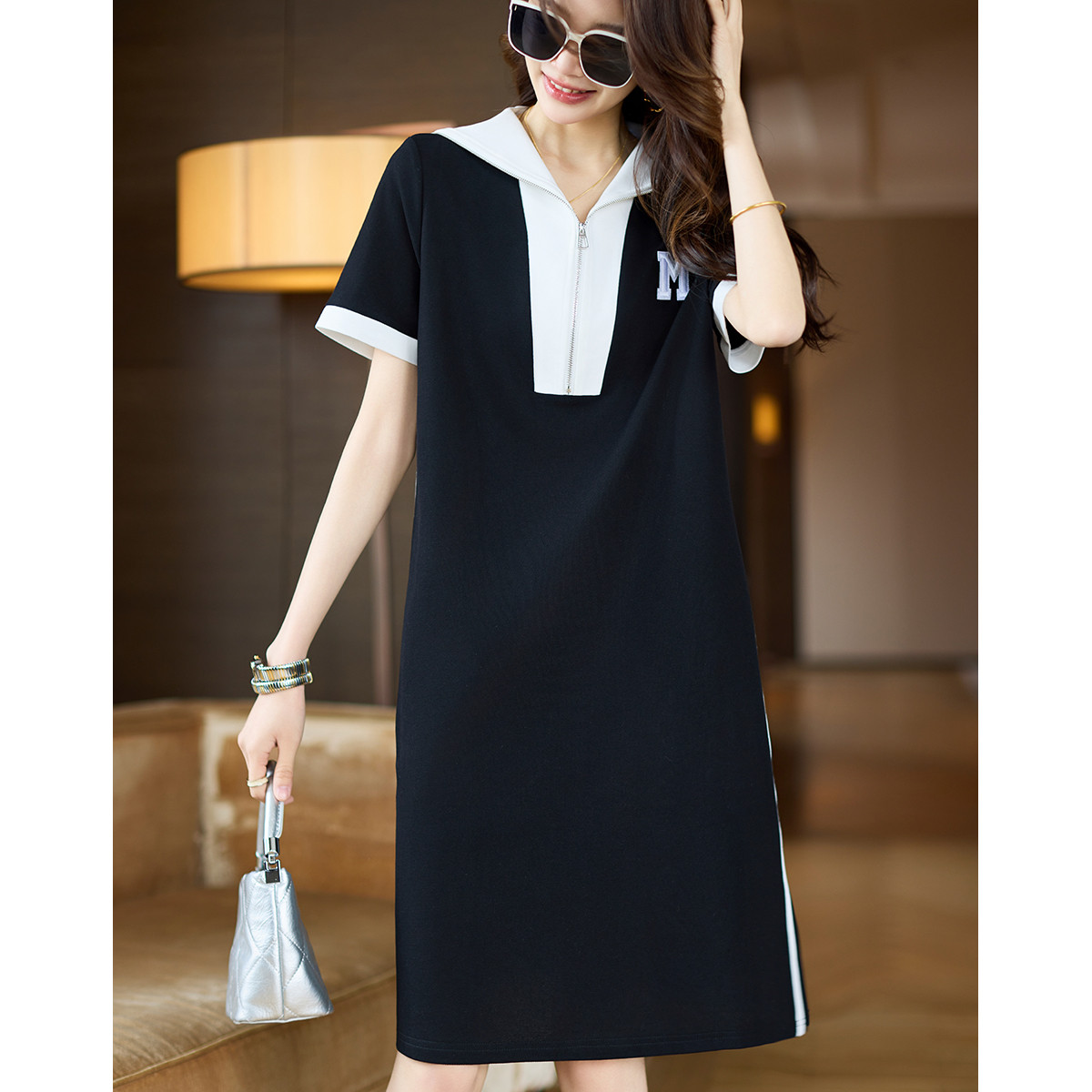 撞色拼接POLO裙2025夏季新款休闲舒适复古T恤裙连衣裙女 758089