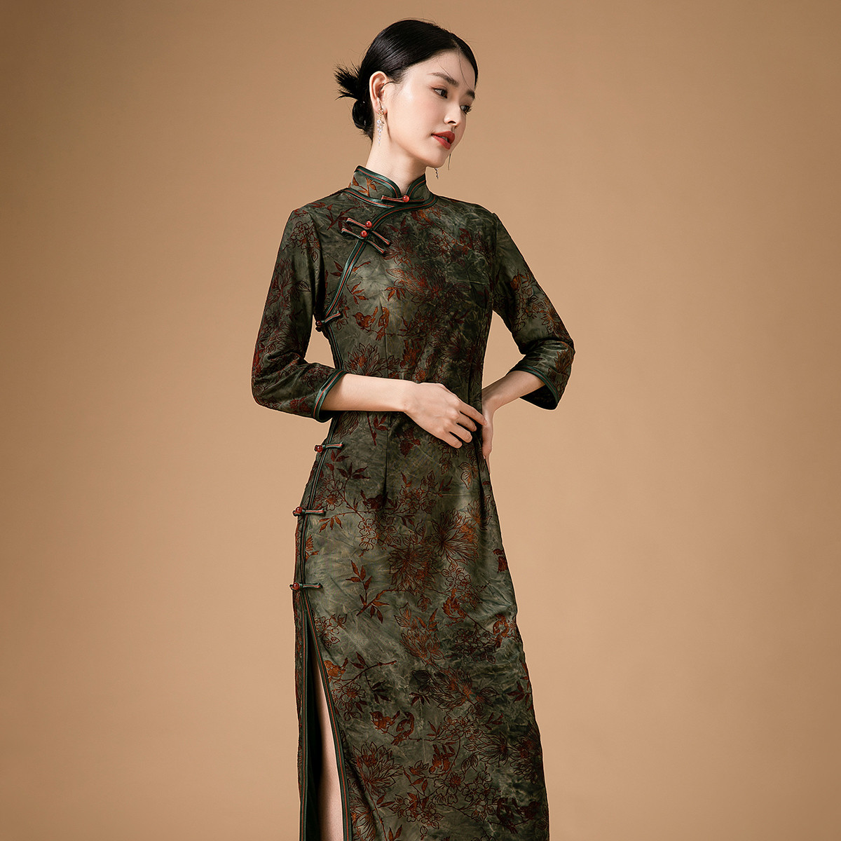 时尚新中式国风改良版旗袍素雅印花高端复古旗袍 967391