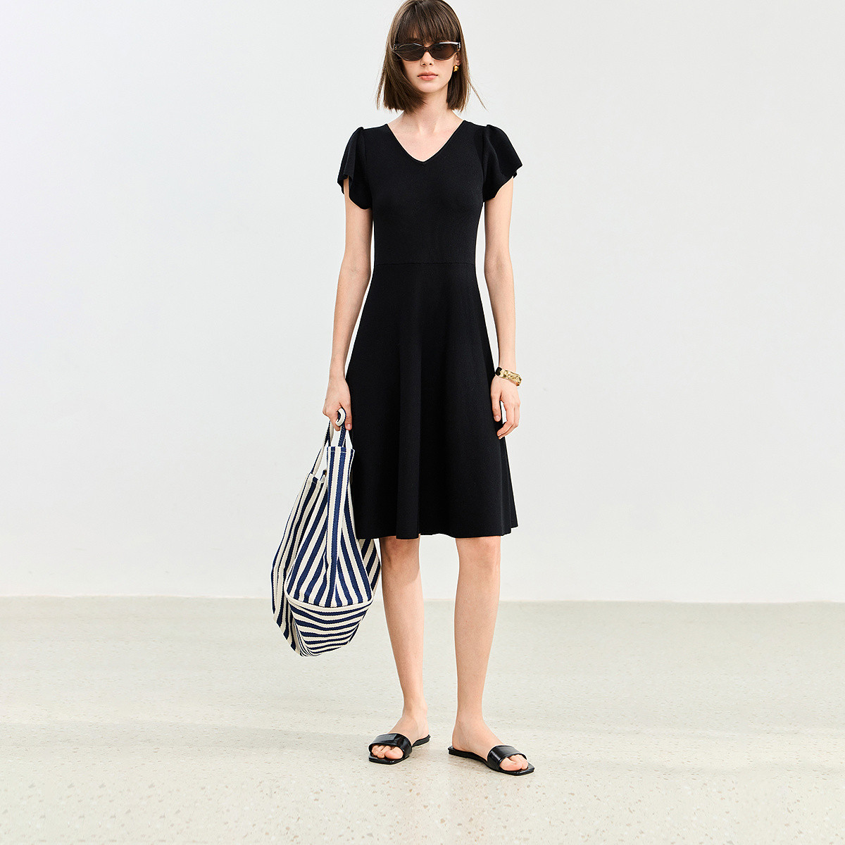 春夏名媛小礼服A裙摆短袖显高显瘦减龄高级感连衣裙 407007