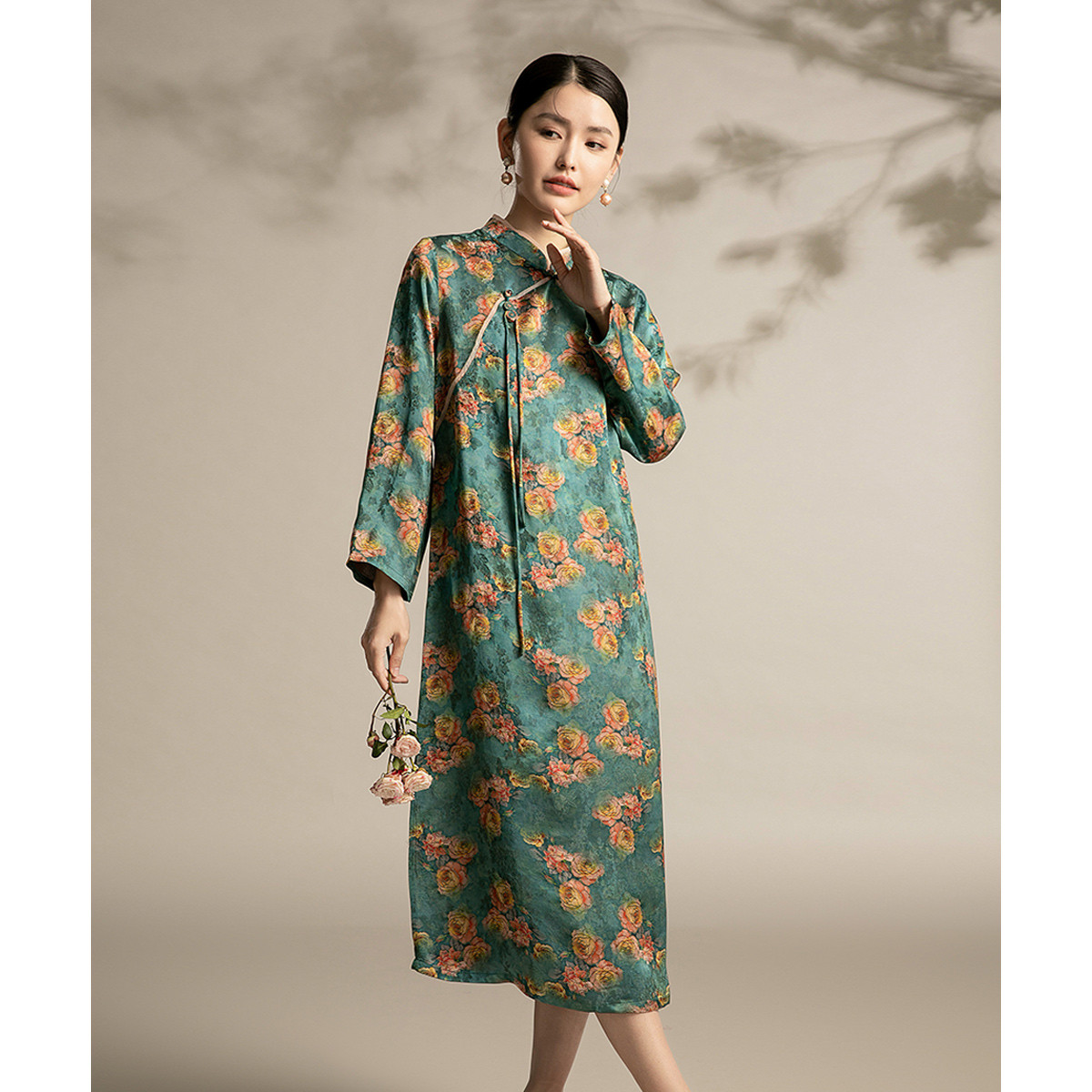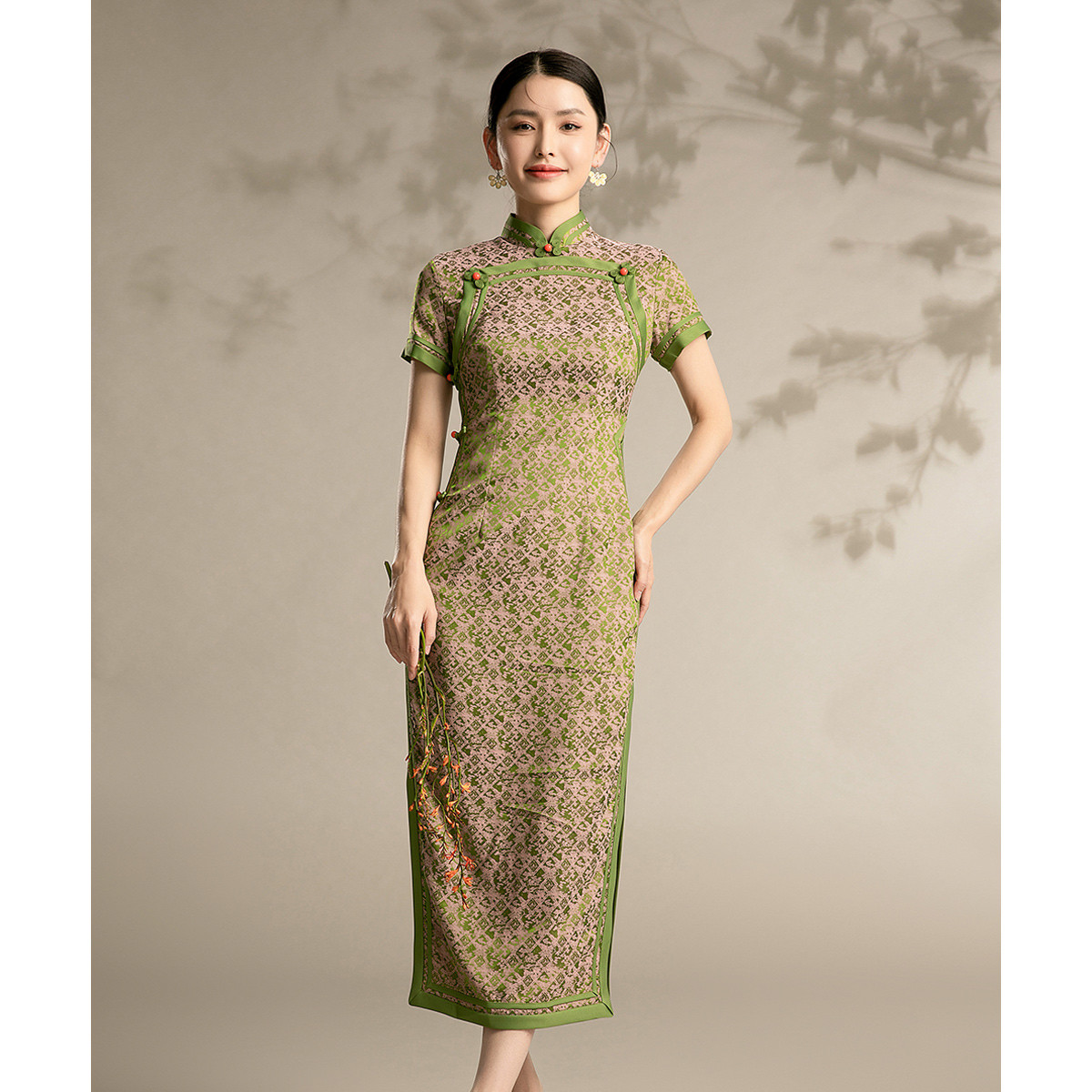 改良民国风复古绿色高端旗袍春夏气质年轻派连衣裙 086943