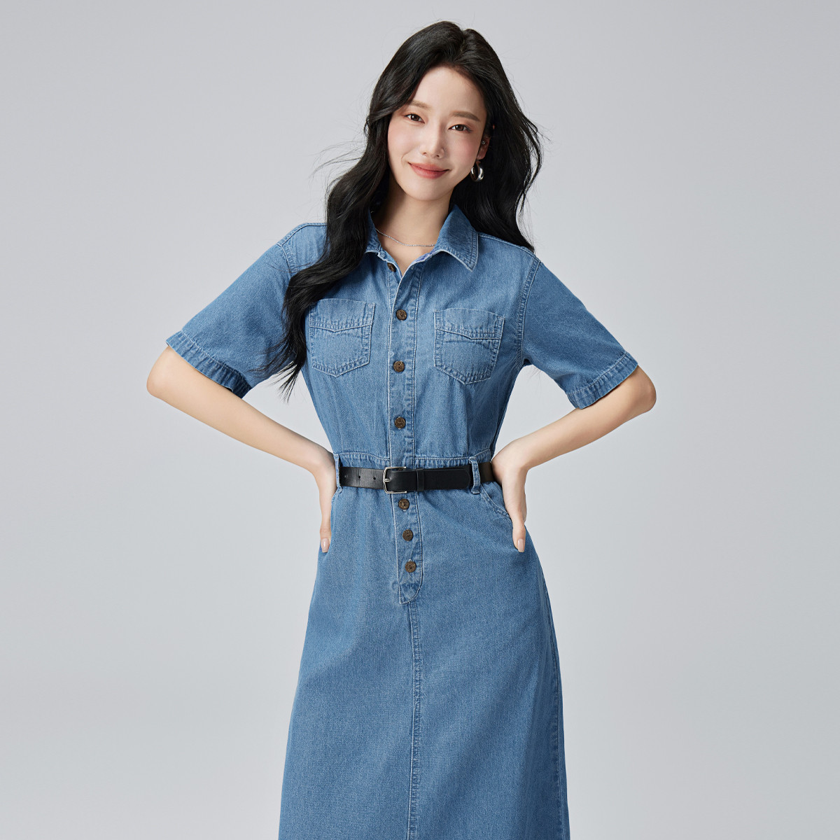 【港风复古牛仔裙】夏款女港风复古收腰牛仔连衣裙 369867