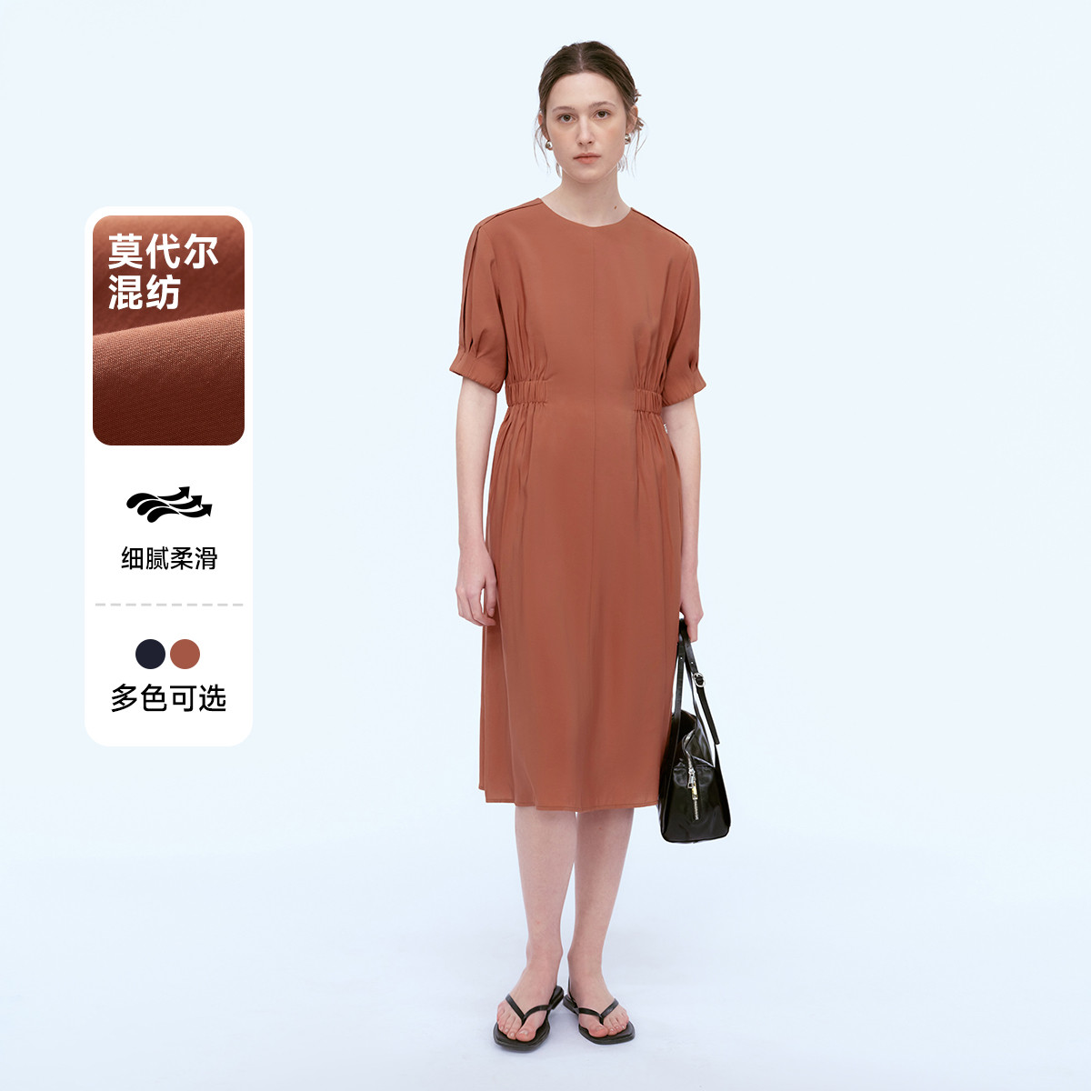 秋季简约收腰修身短袖连衣裙 293215