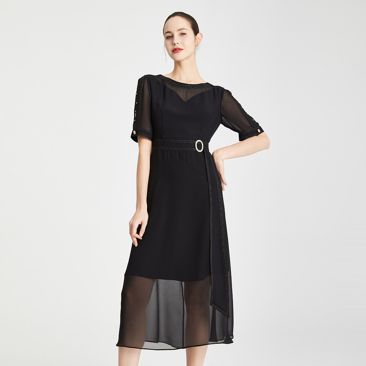 高端气质显瘦复古改良版春夏短袖款连衣裙 499935