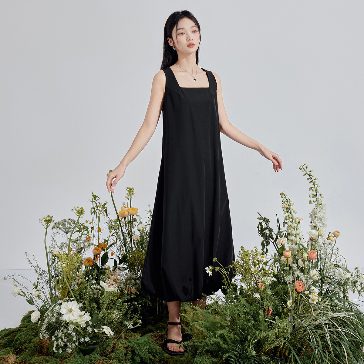 【优雅大方】夏季款高级感显瘦无袖舒适百搭长款连衣裙 040203