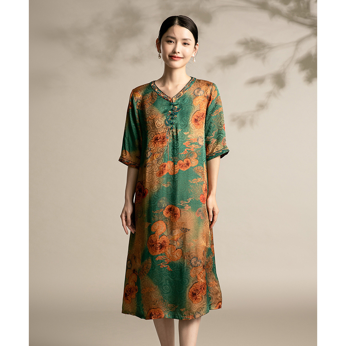 新中式复古民国风提花旗袍改良气质款连衣裙 282783