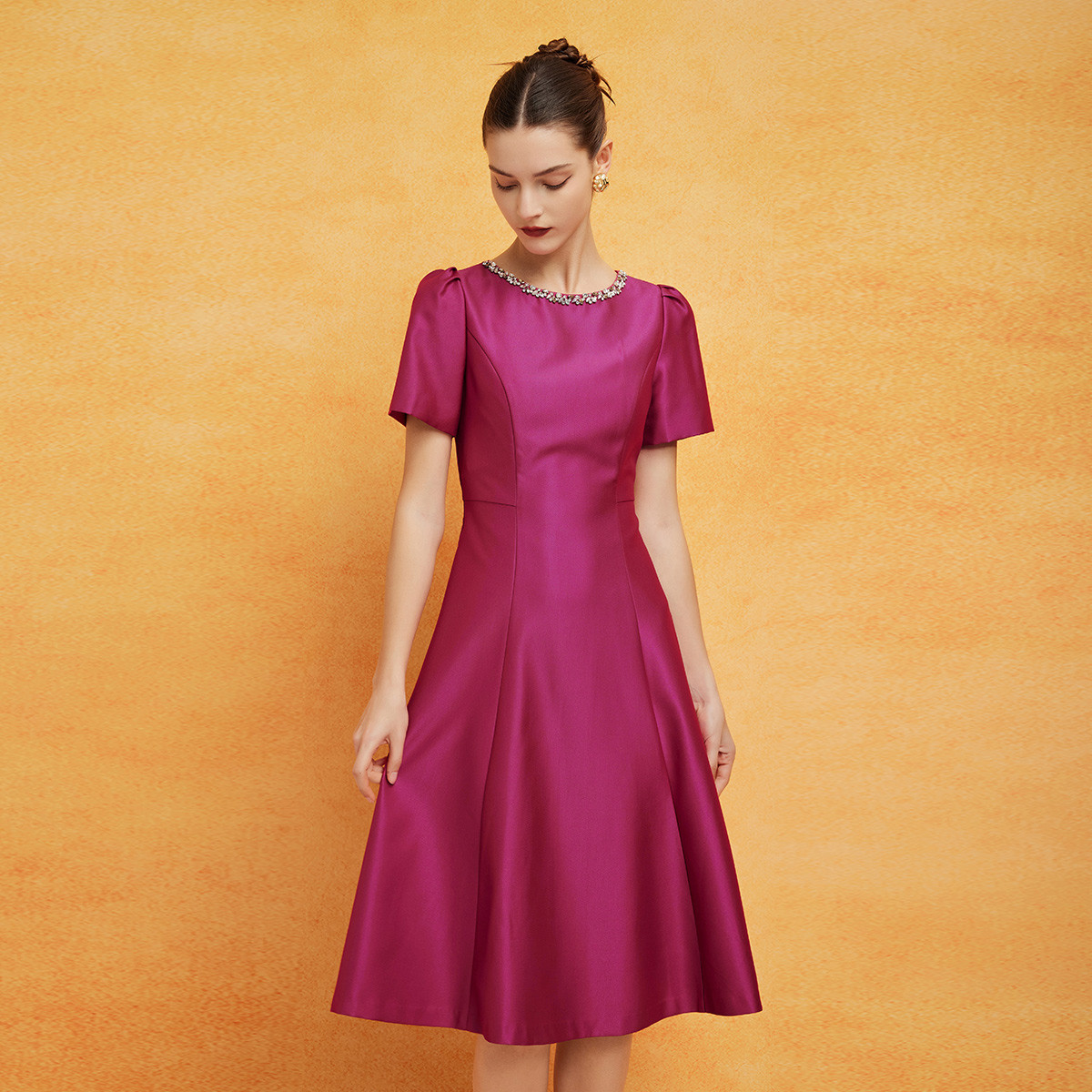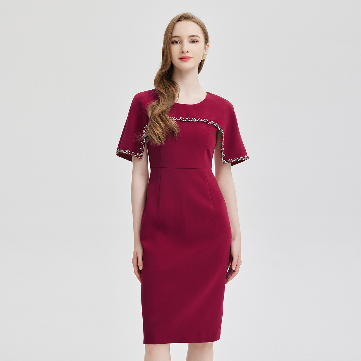 夏季时尚圆领钉珠OL通勤偏小礼服感修身连衣裙 285727