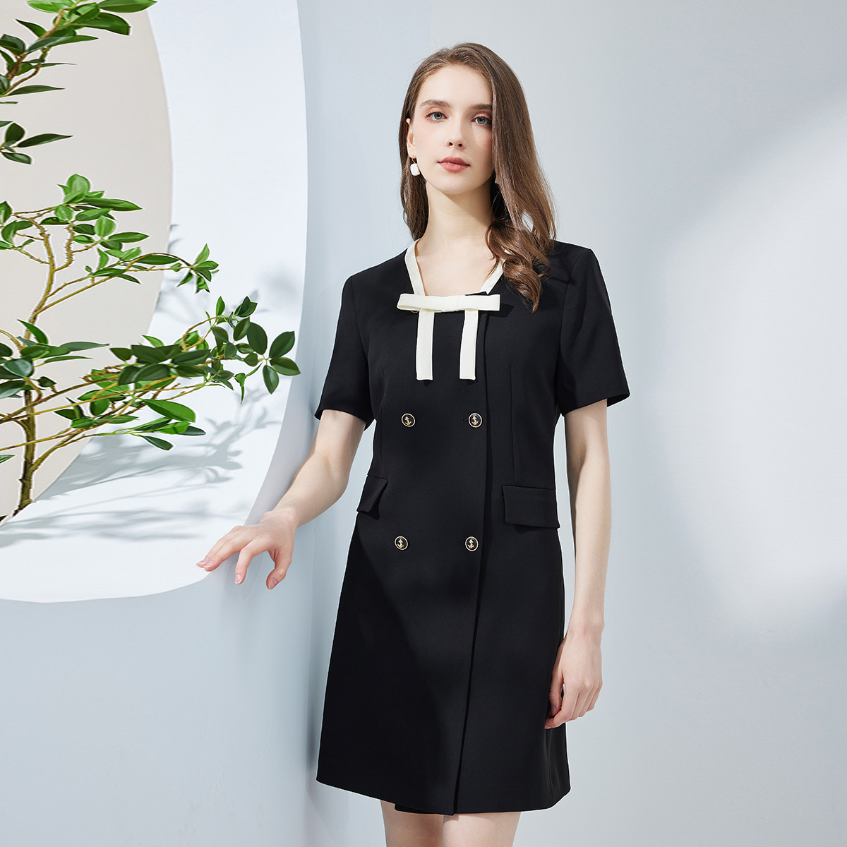 夏季高级感撞色蝴蝶结小香风双排扣修身显瘦名媛气质 281951