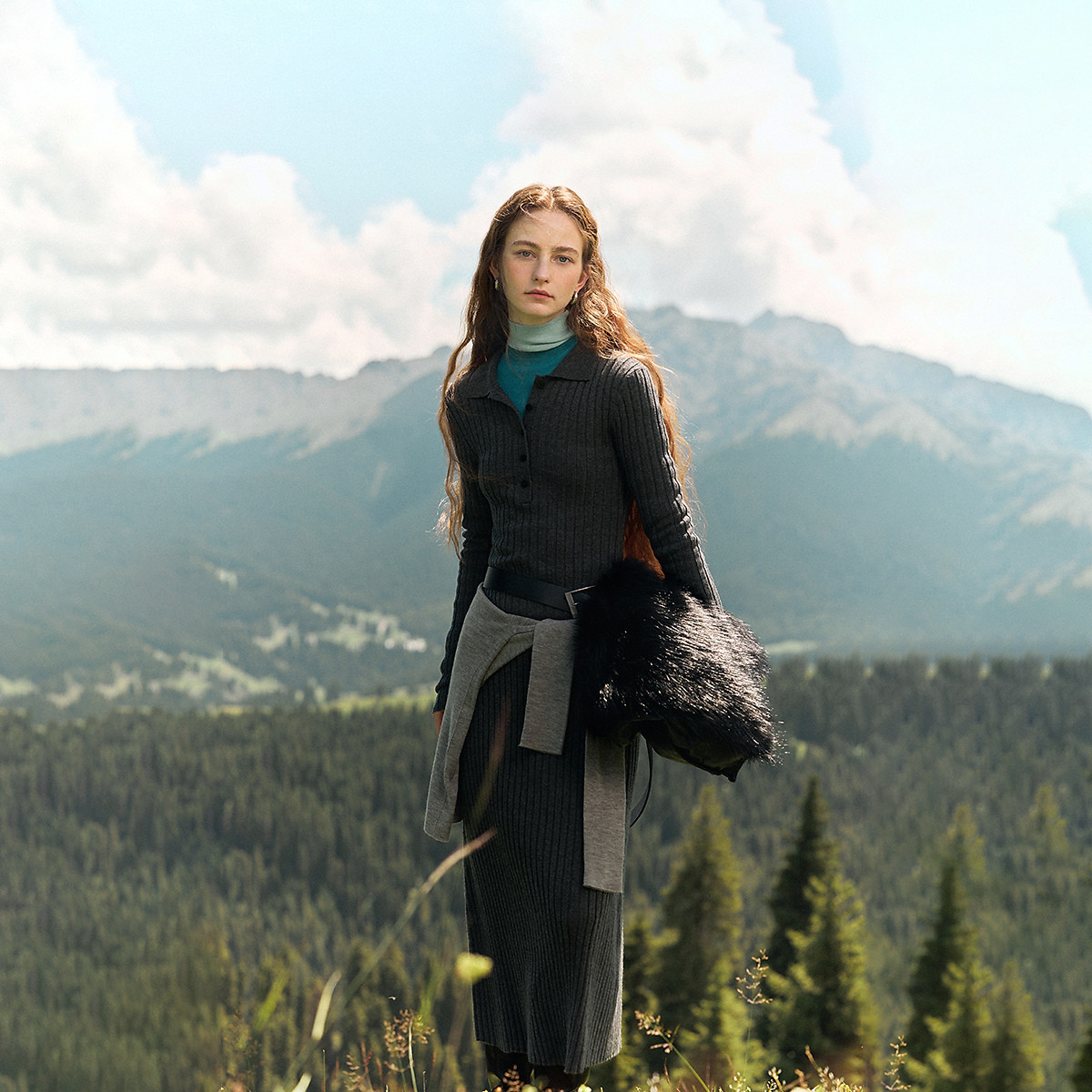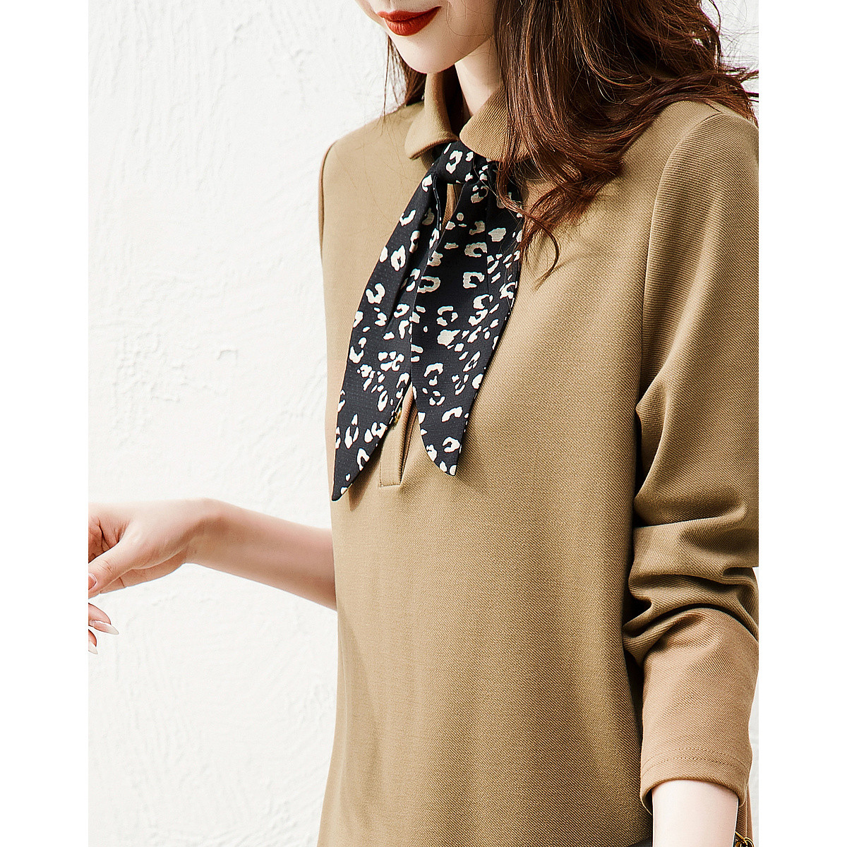 【细密入微】春季静奢风含绵羊毛翻领腰带舒适藏肉连衣裙女中长款 843457