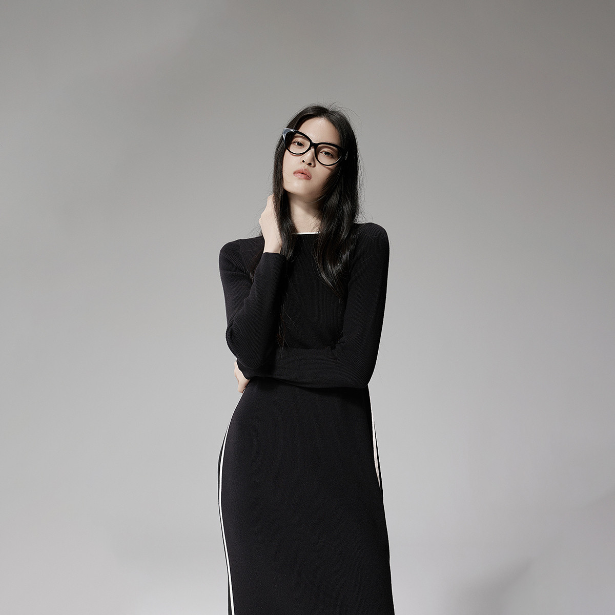 春装 长款气质优雅抗起球羊毛针织连衣裙 417871
