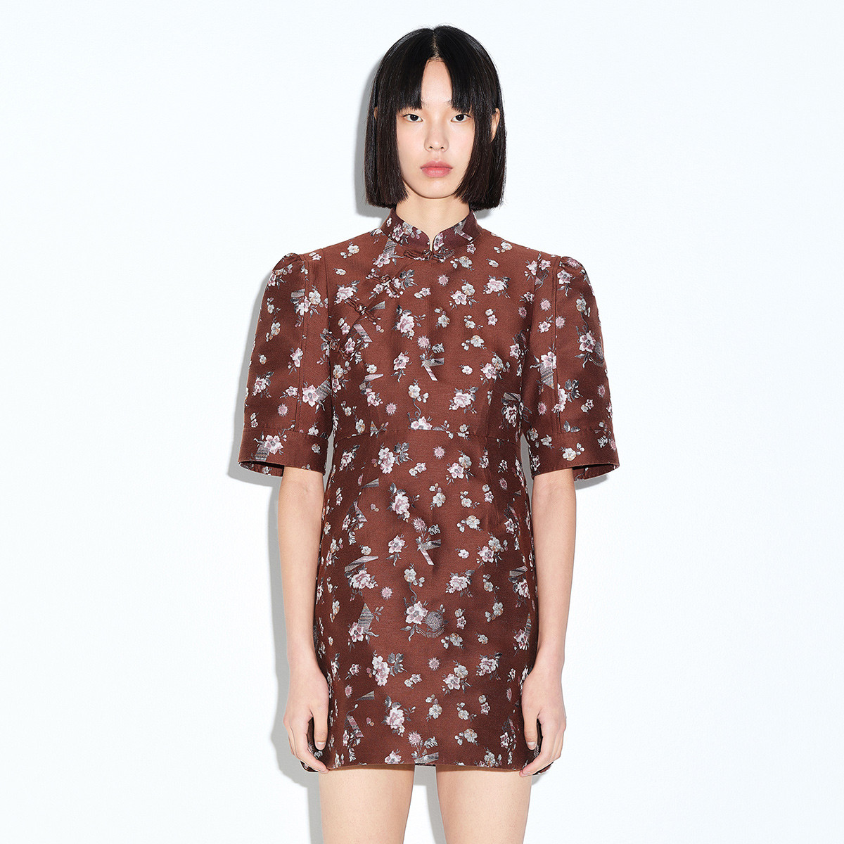 地素春秋专柜印花中袖旗袍连衣裙女 270347
