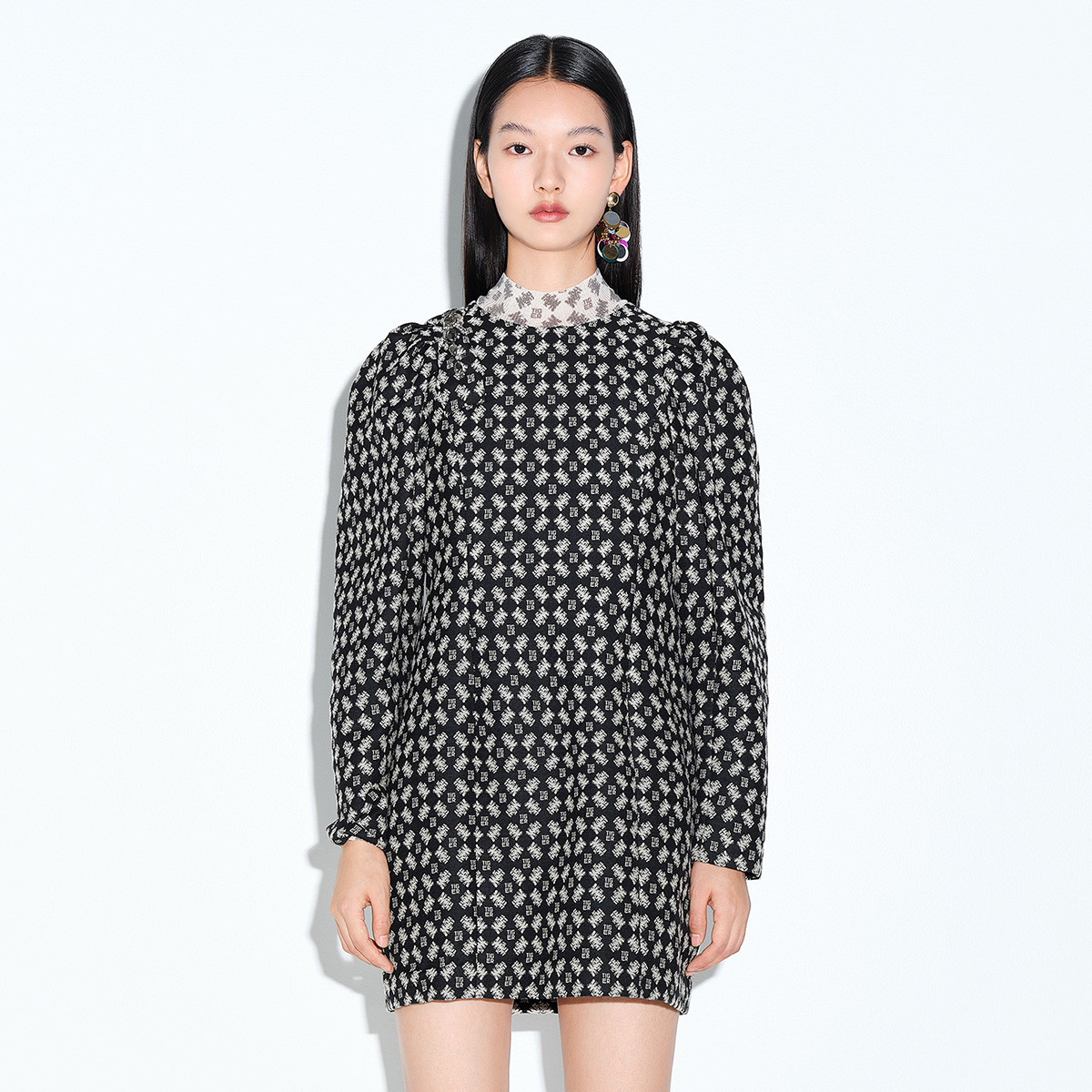 宋妍霏同款地素春秋提花钉珠连衣裙女 058251