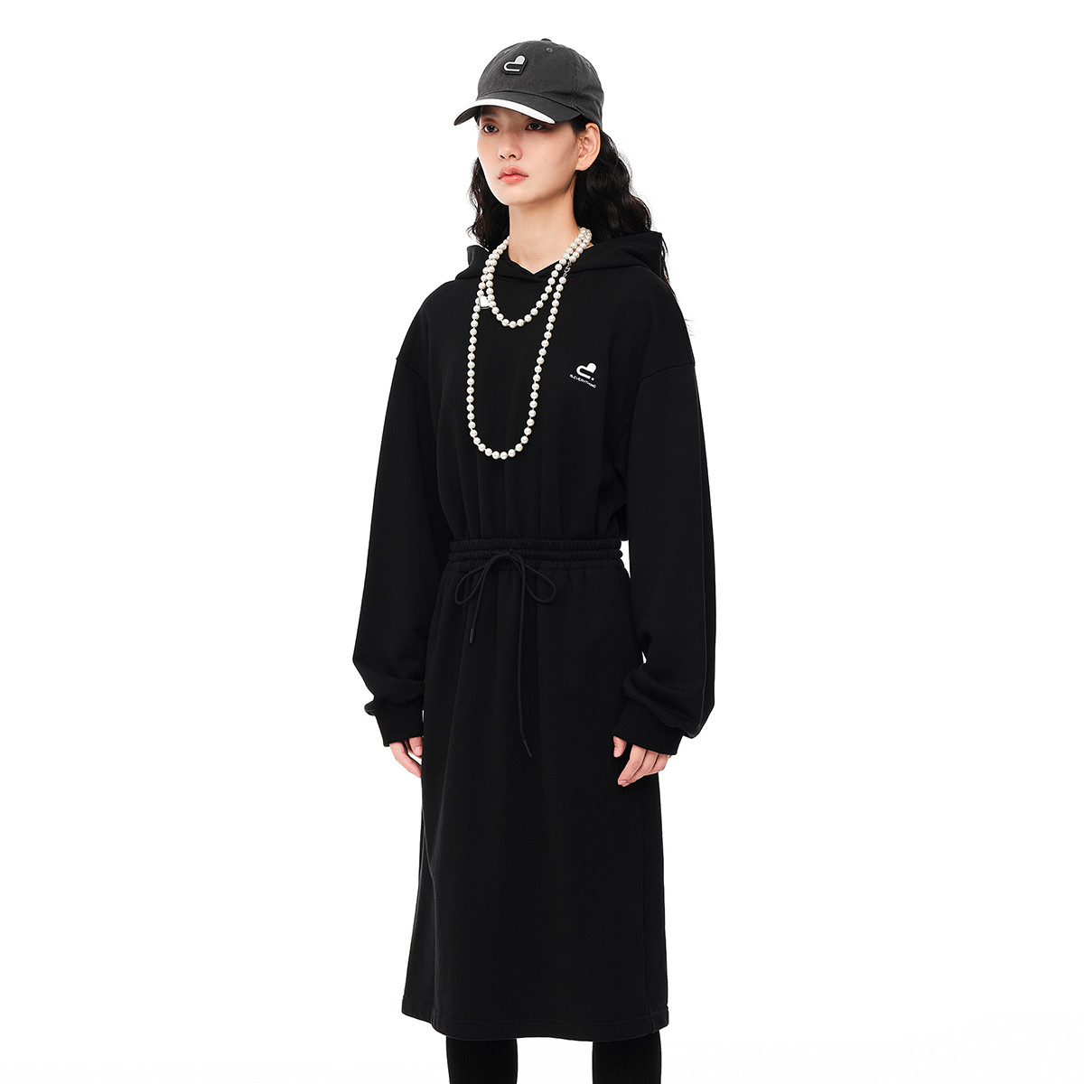 地素秋冬 复古运动连帽松紧腰卫衣连衣裙女 461131