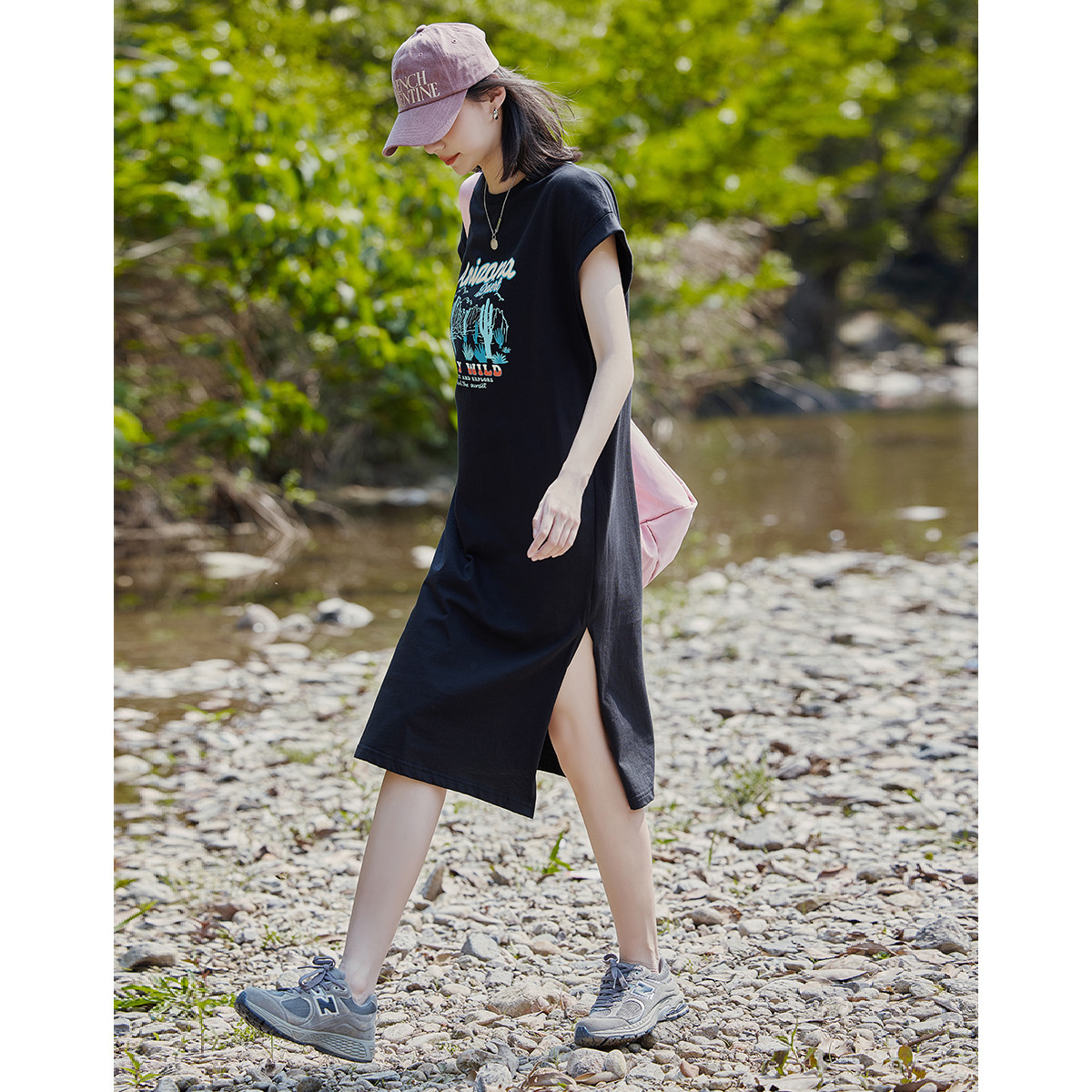 【字母印花长裙】夏装圆领无袖简约时尚T恤连衣裙 656450
