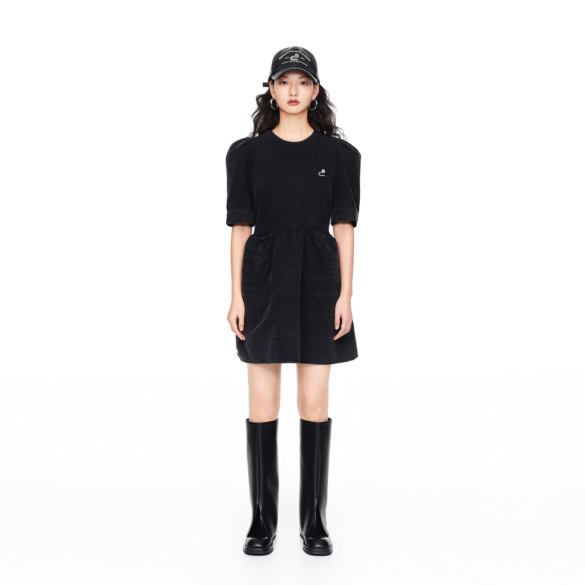 【爆款补单】地素春秋专柜气质泡泡袖短袖牛仔蛋糕连衣裙女 612427