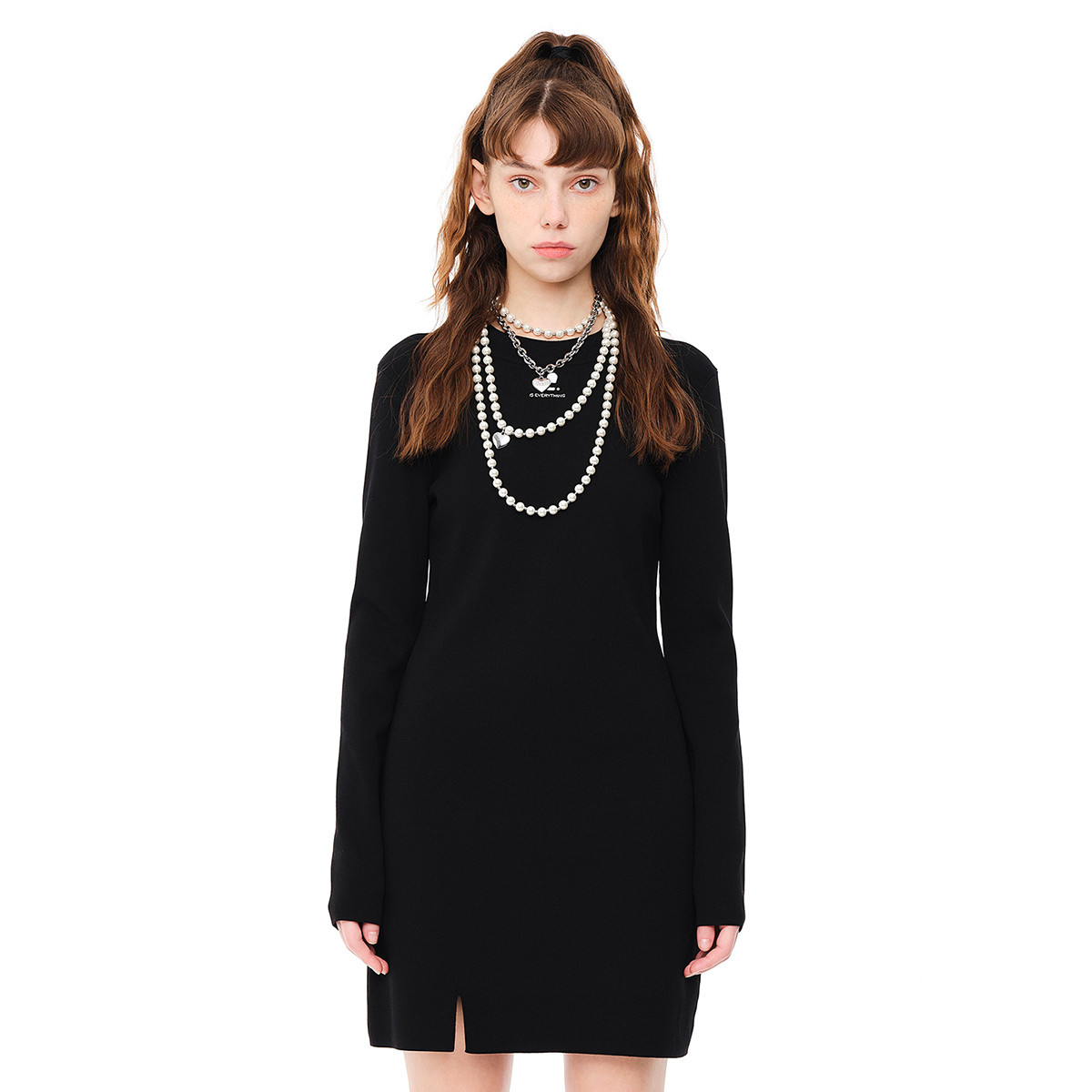 地素 秋冬甜酷泡泡袖开叉针织连衣裙女 789515