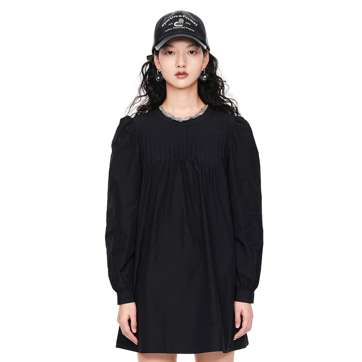 地素春秋法式复古羊腿袖设计领口链条连衣裙 224843